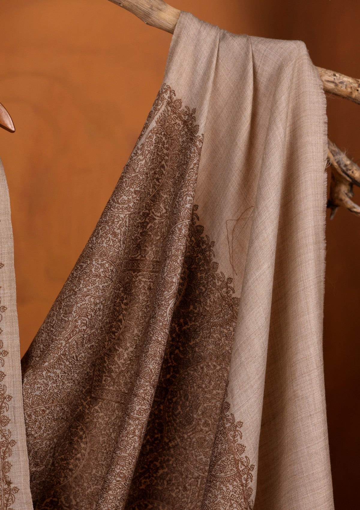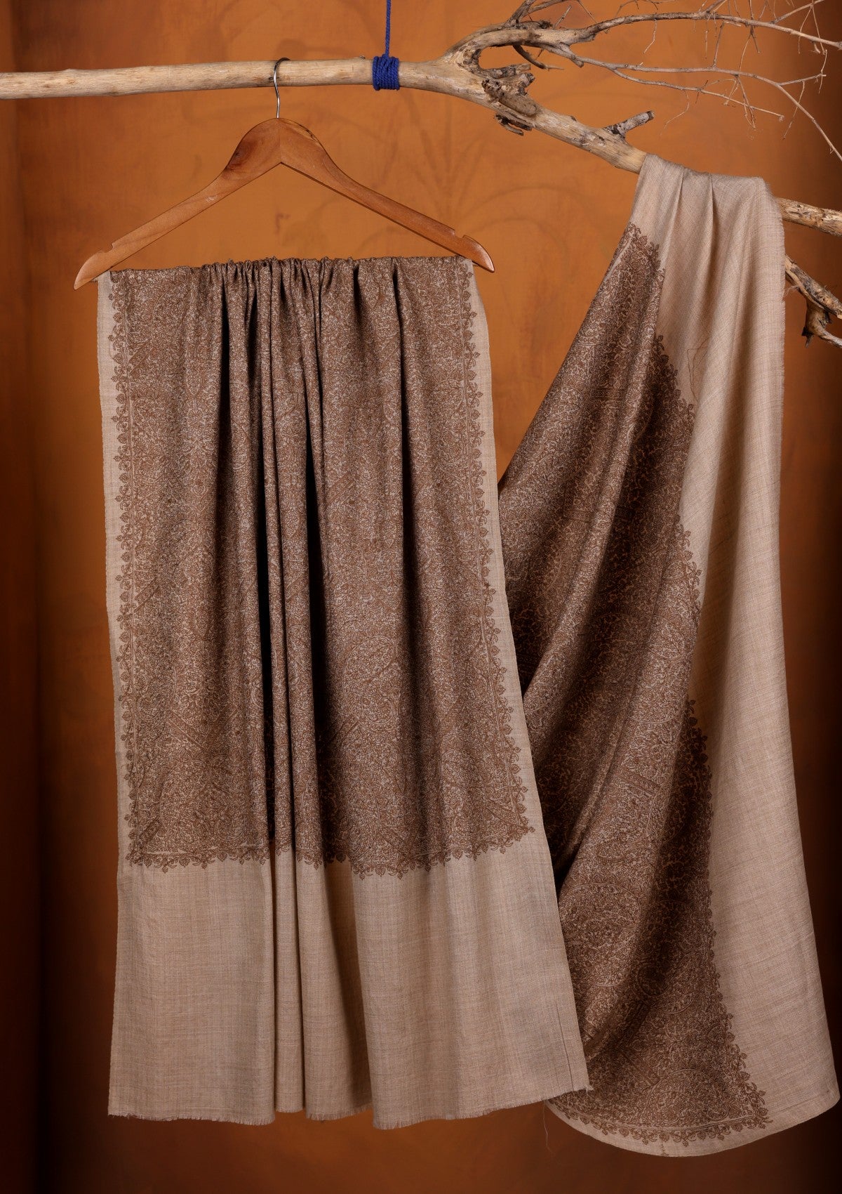 Pashmina Embroidered Jaaldar Shawl D#08 - Skin