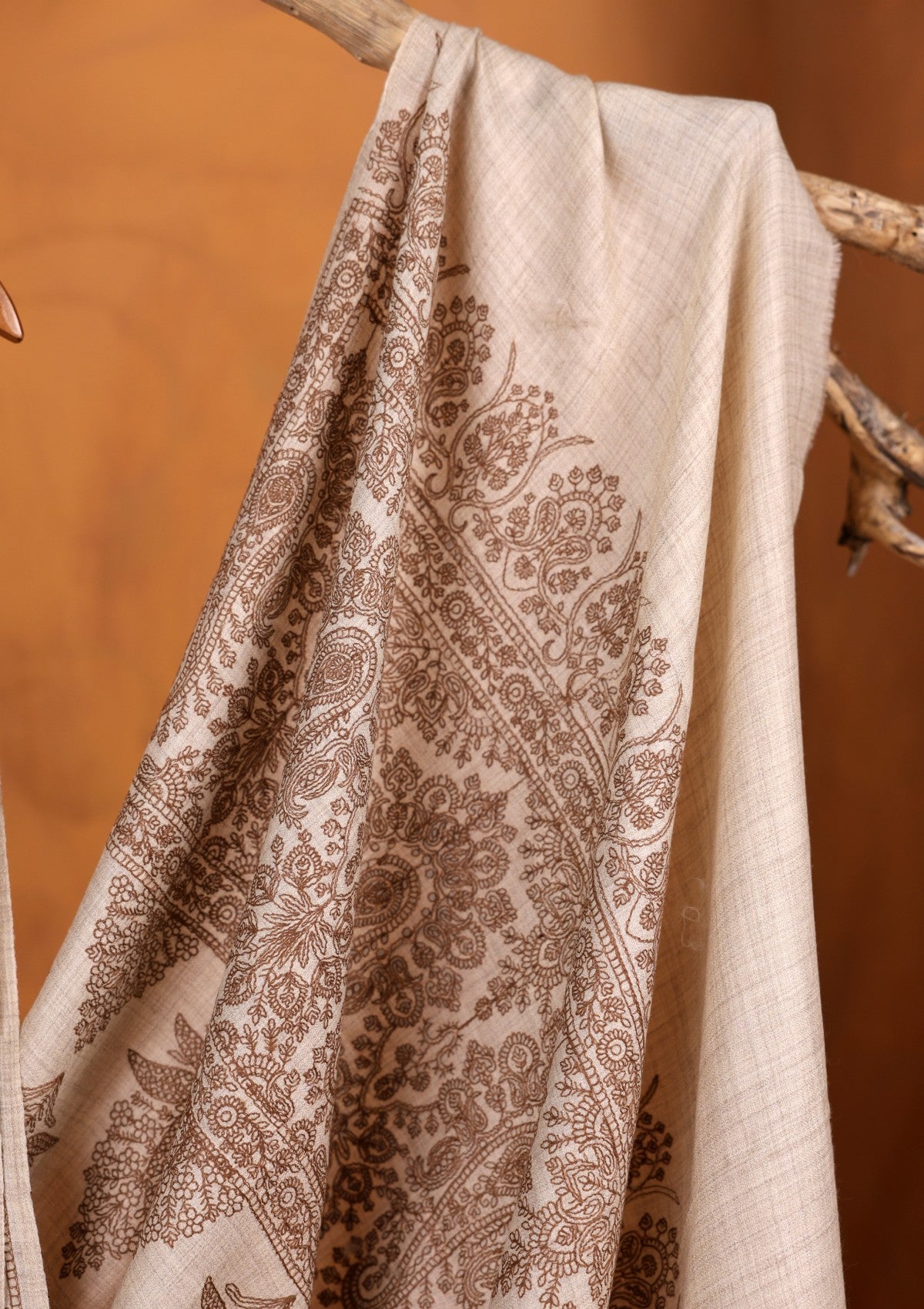 Pashmina Embroidered Jaaldar Shawl D#13 - Fawn