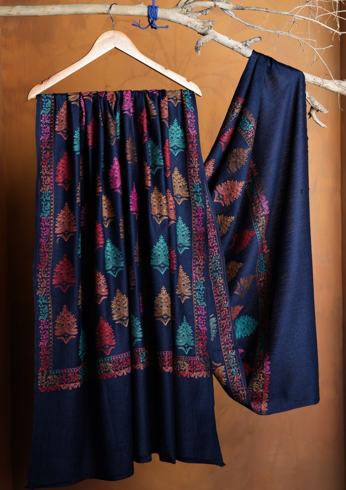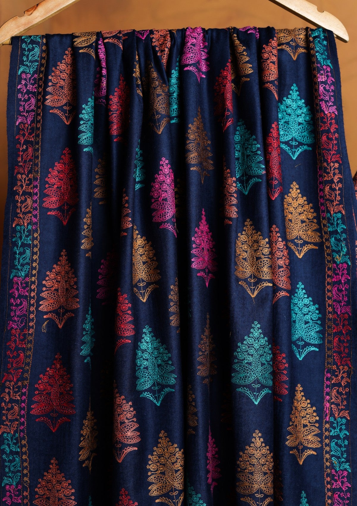 Pashmina Embroidered Jaaldar Shawl D#31 - N Blue