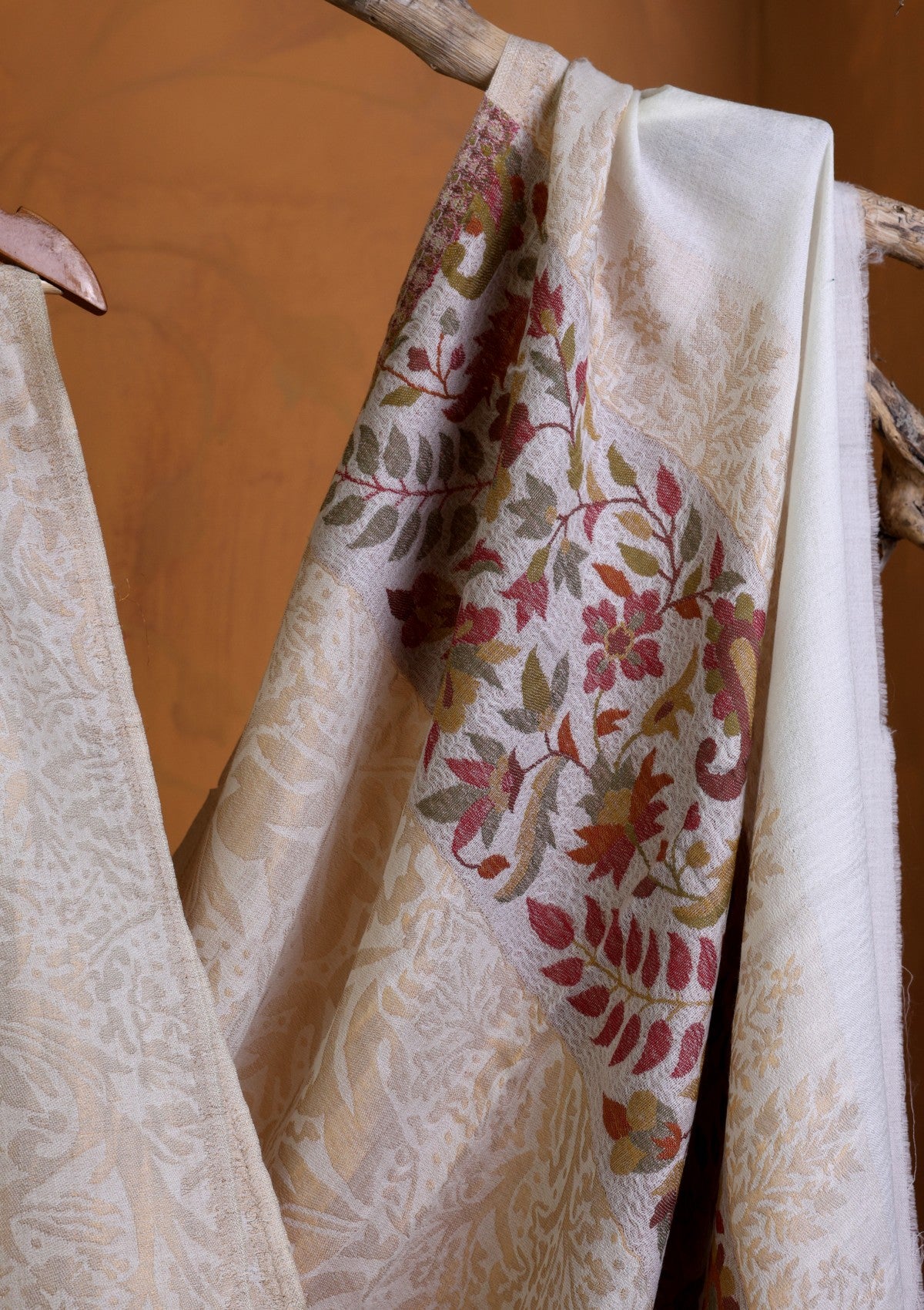 Pashmina Zari Jamawar Shawl D#06 - Off White