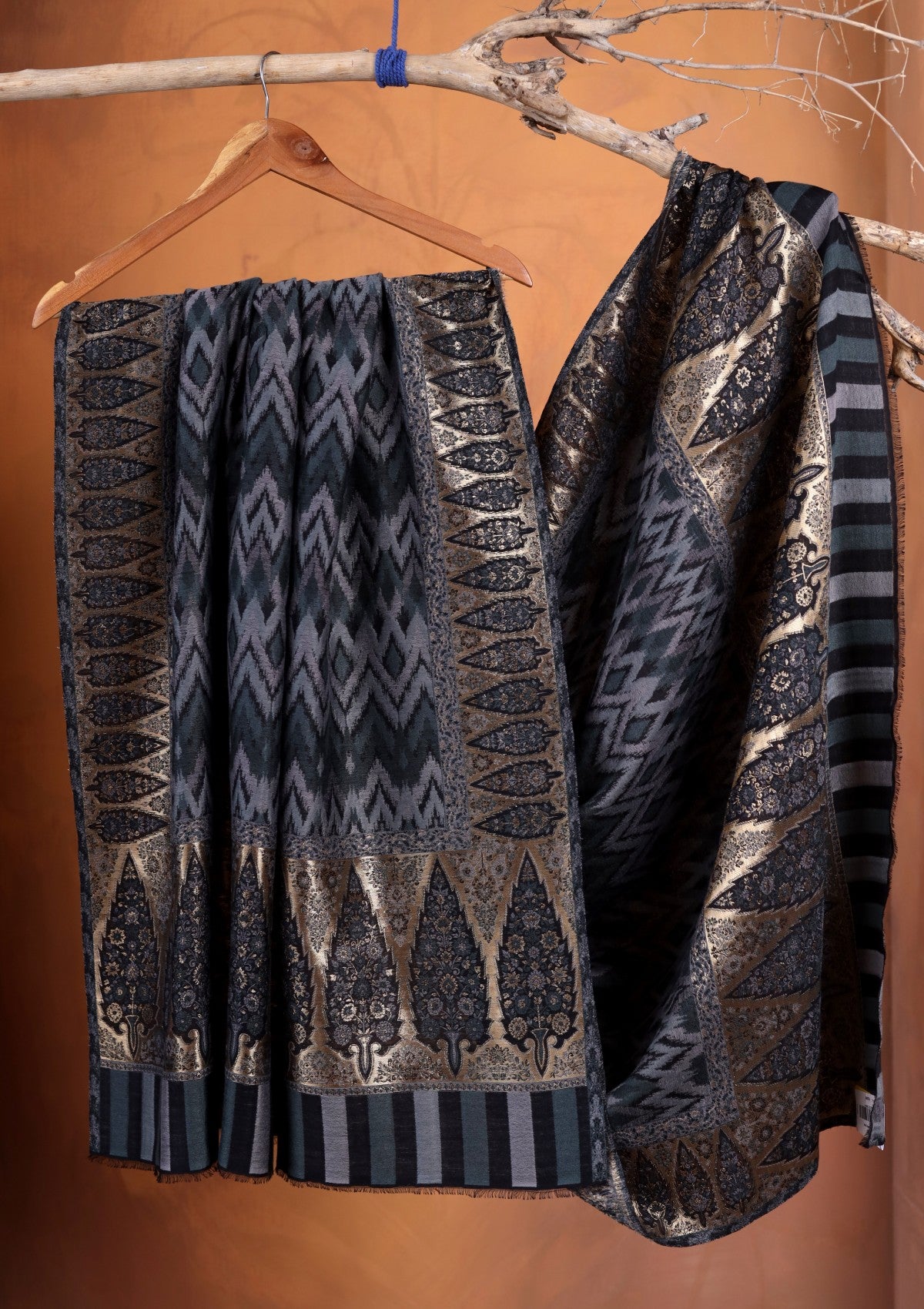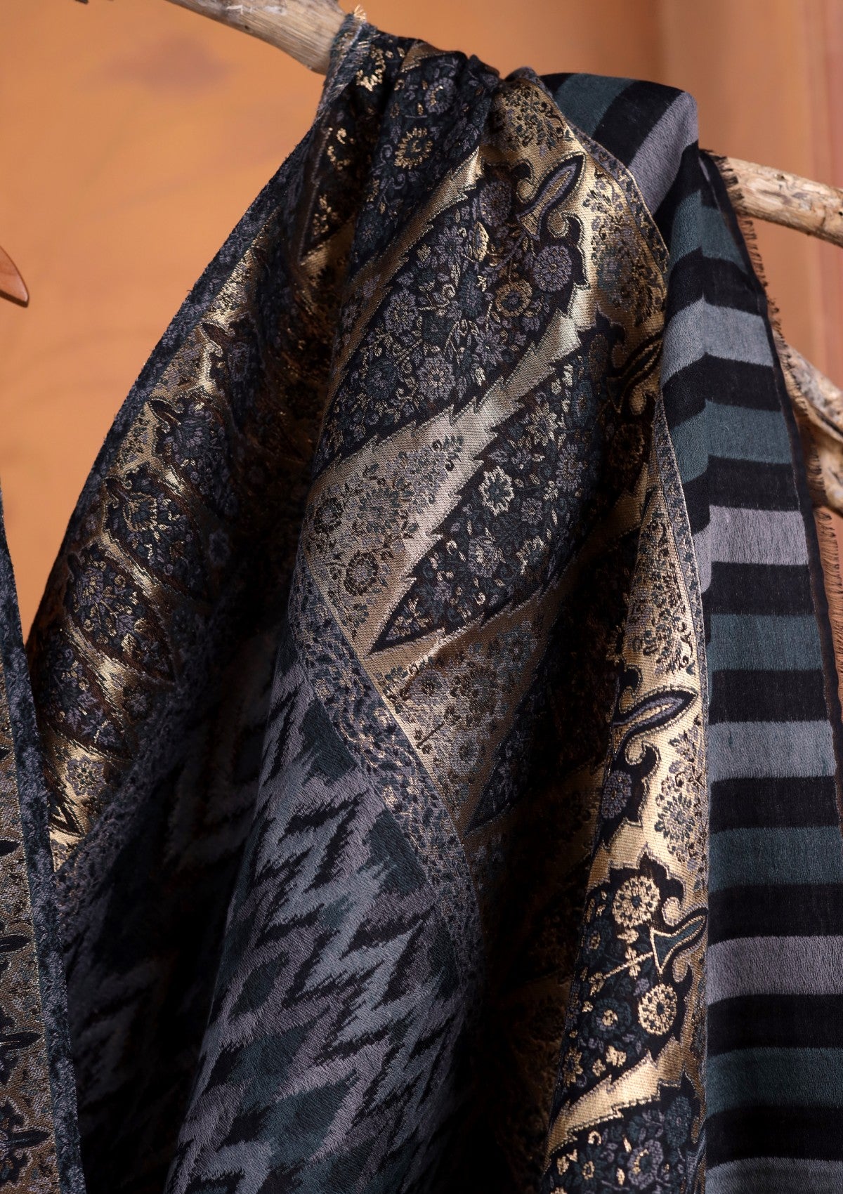 Pashmina Zari Jamawar Shawl D#102 - Black