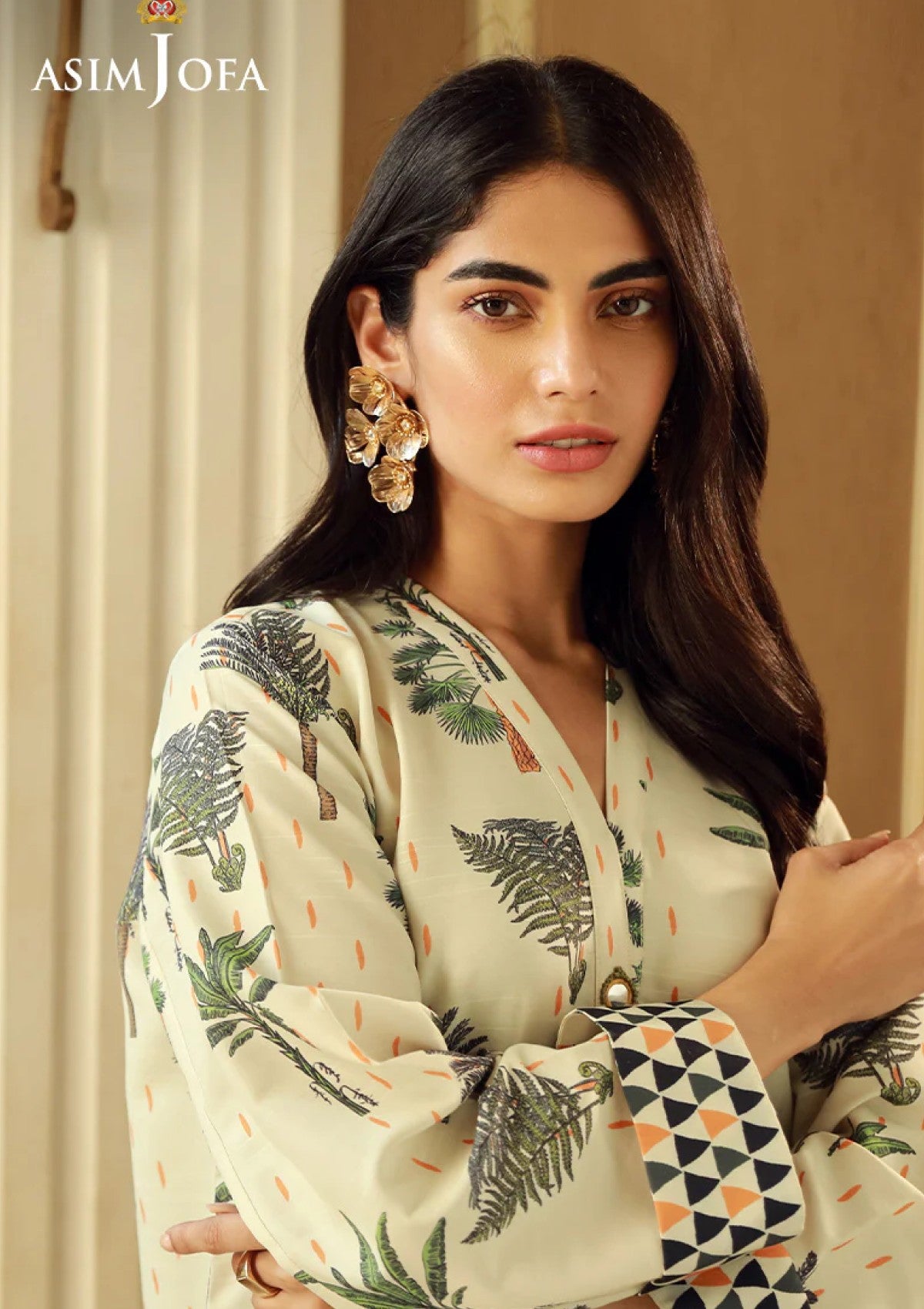This cream colored shirt exudes a sense of chicness. The printed shirt is like a canvas painted with gorgeous patterns, adding a vibrant touch to the overall look. This look is perfect for a day out with friends.