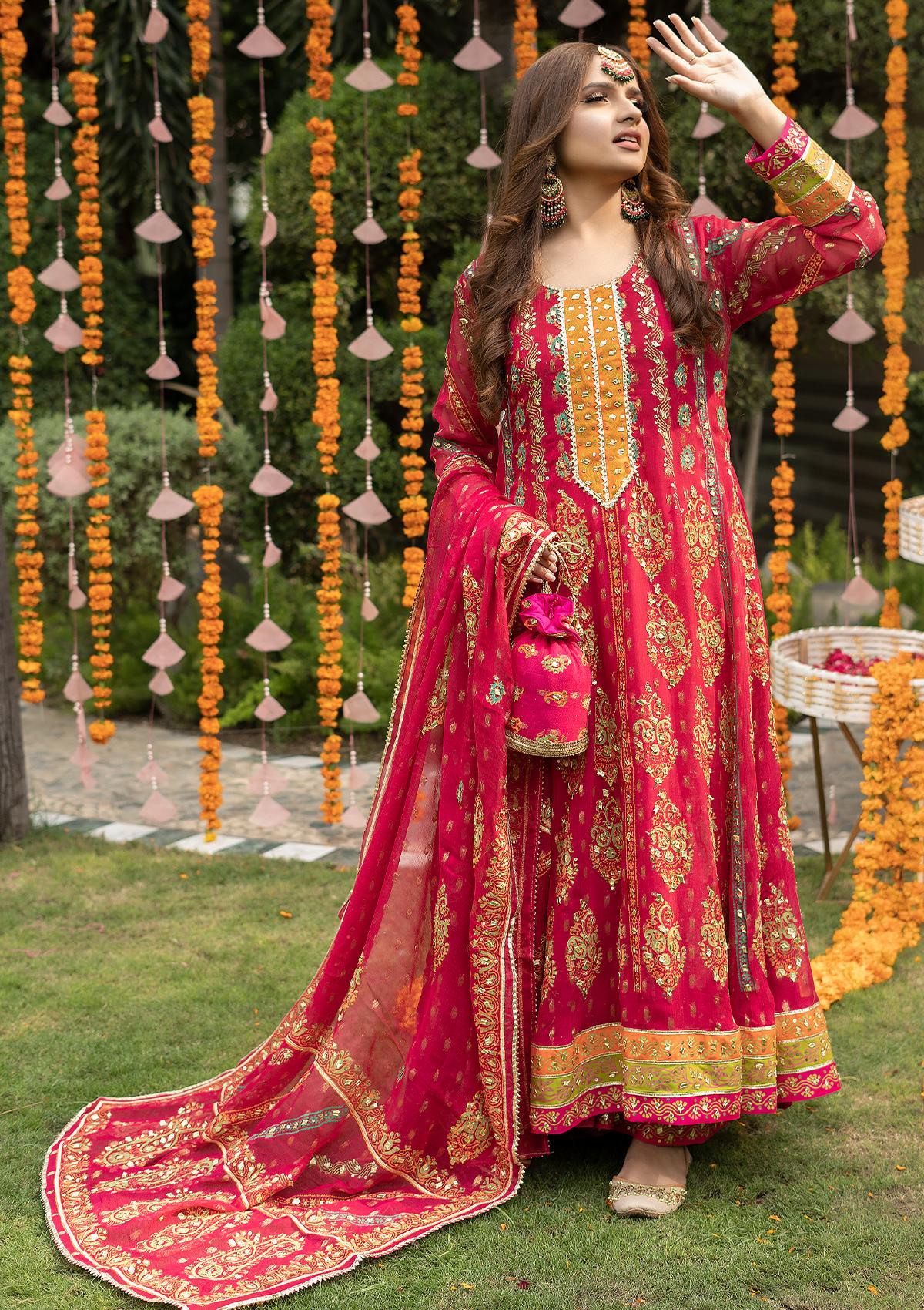 Package Includes: 4 Pcs Suit Top, Bottom, Dupatta & Potli Bag