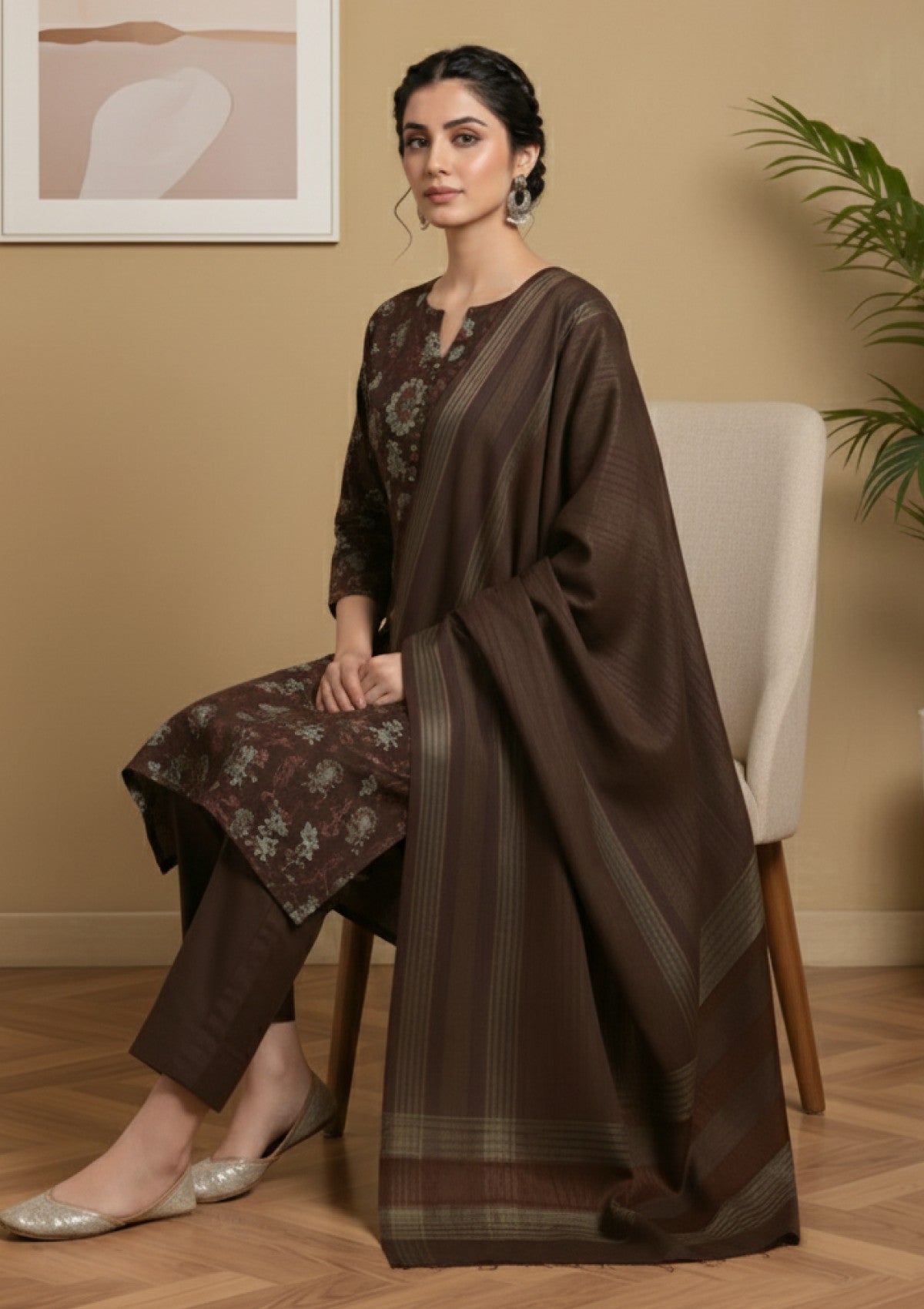 Winter - Riwaj - Embroidered Peach Leather Suit - D#01 - Chocolate