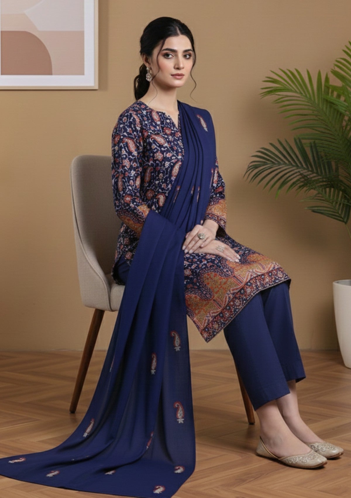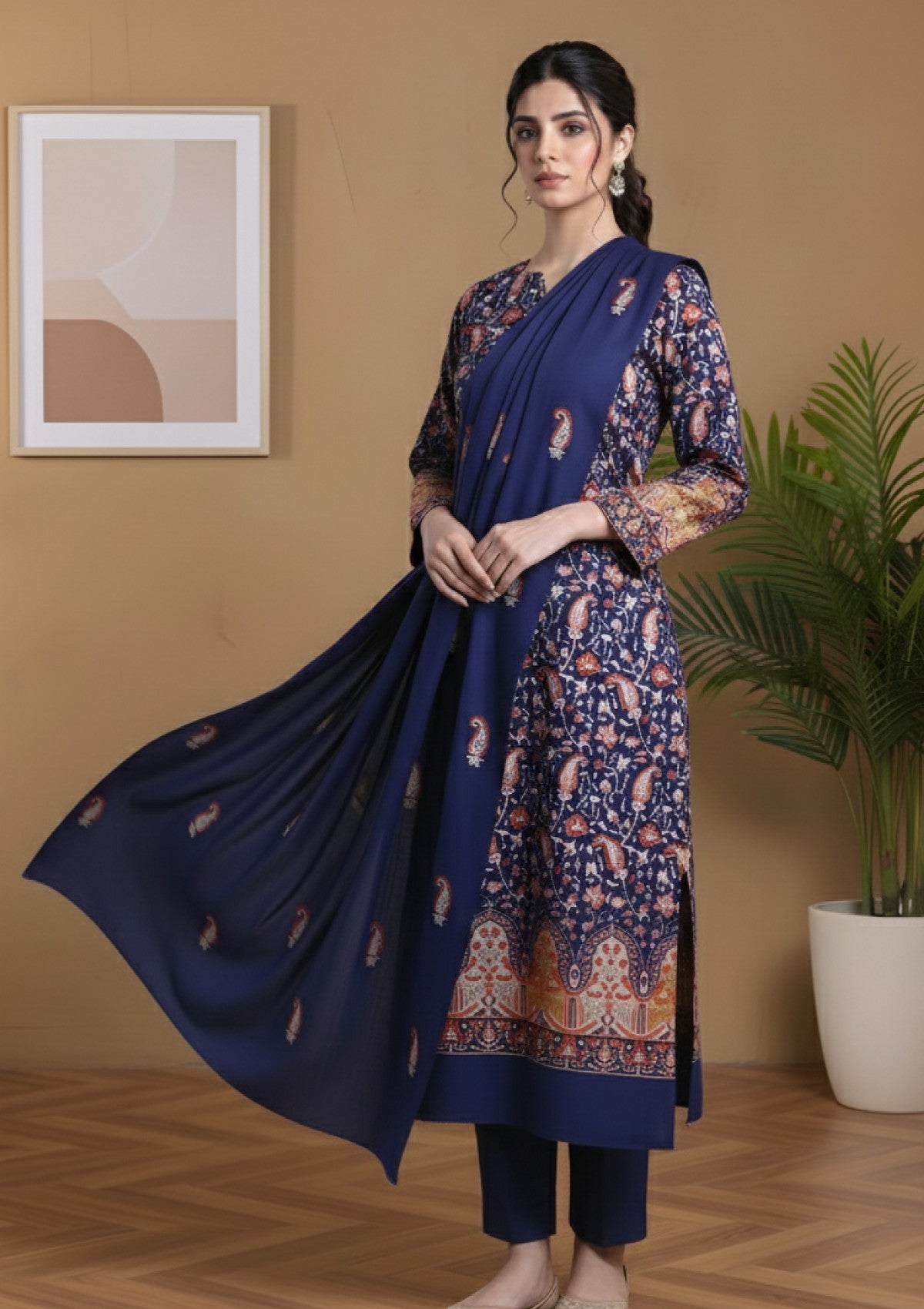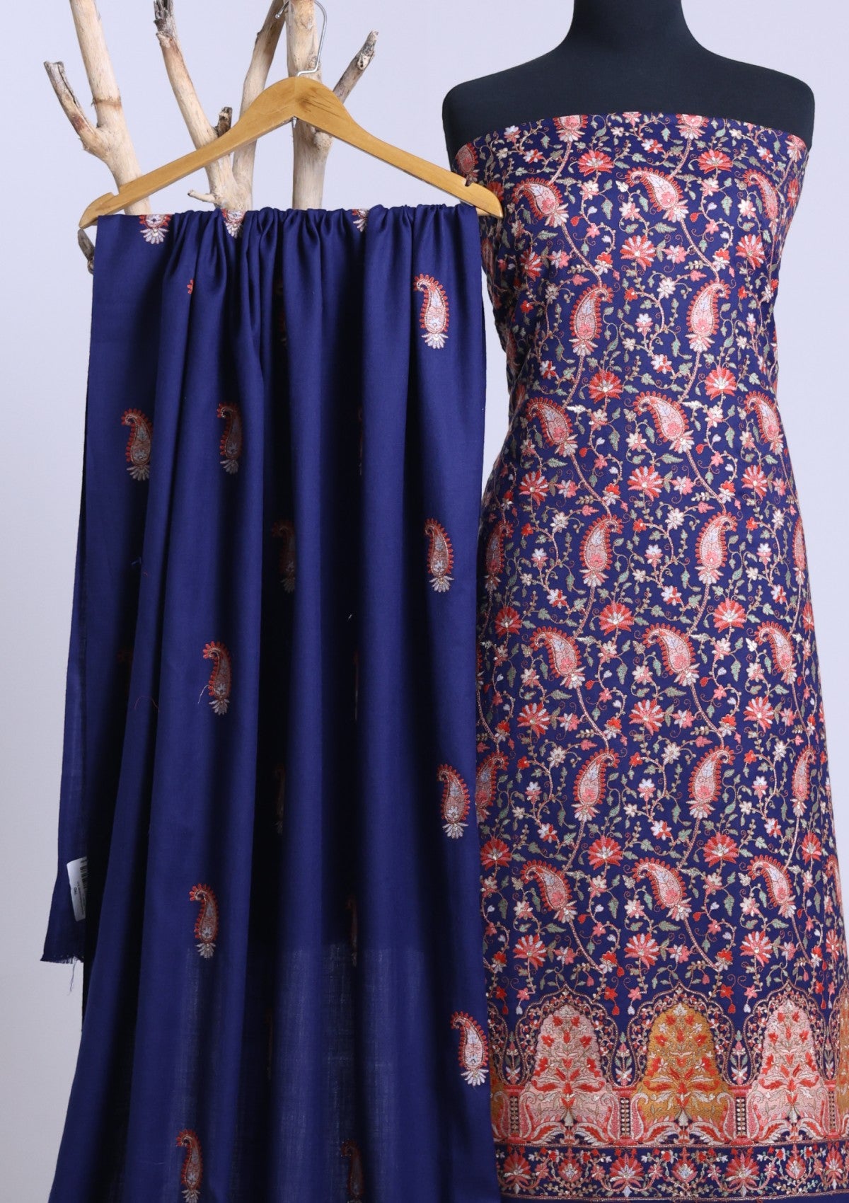 Winter - Riwaj - Pashmina Embroidered Suit - D#10 - N Blue