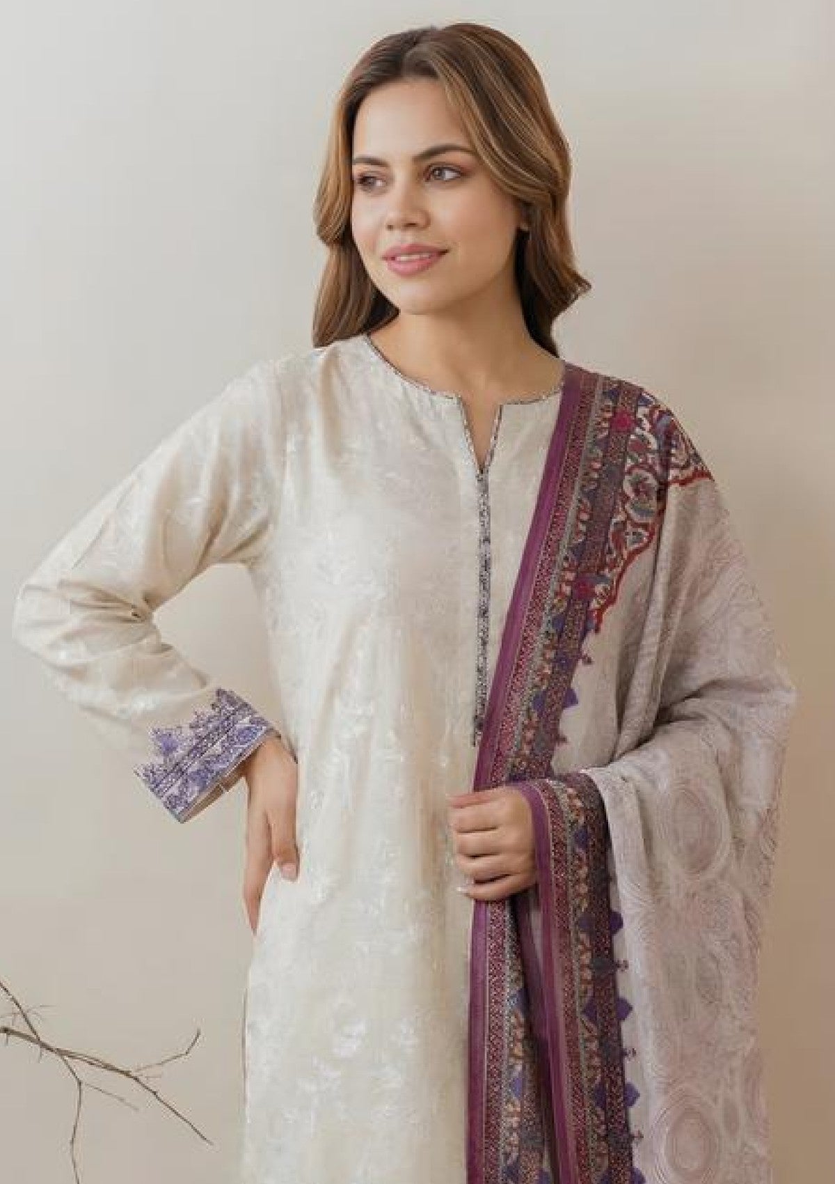 Winter - Riwaj - Pashmina Embroidered Suit - Wool Shawl - D#01 - Skin