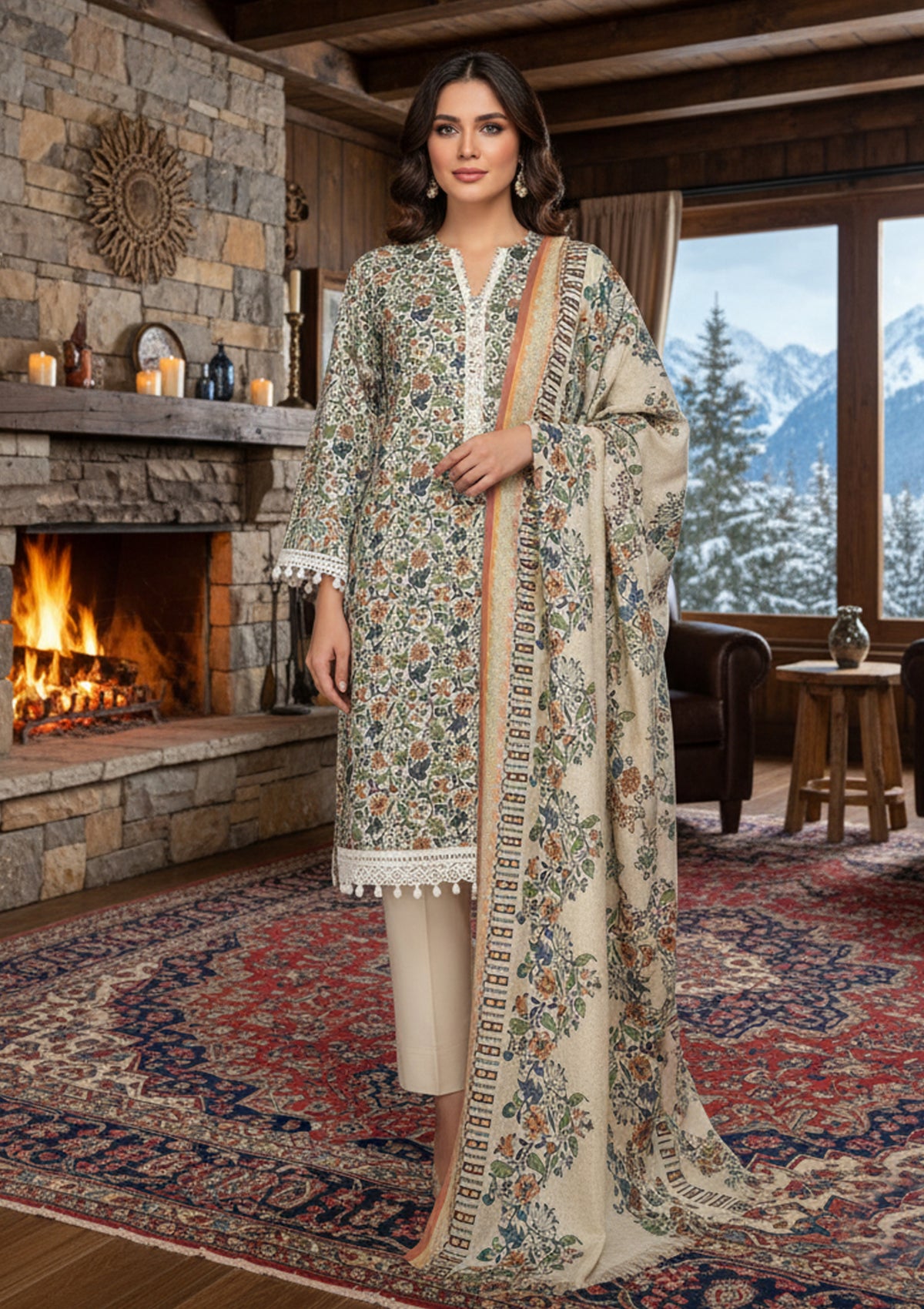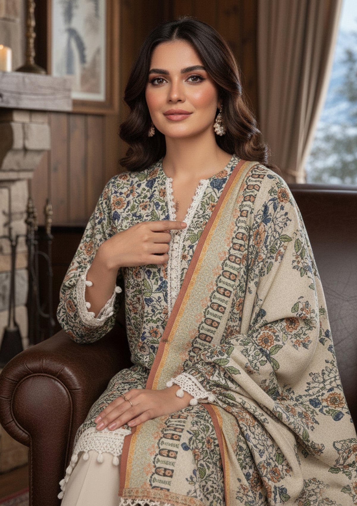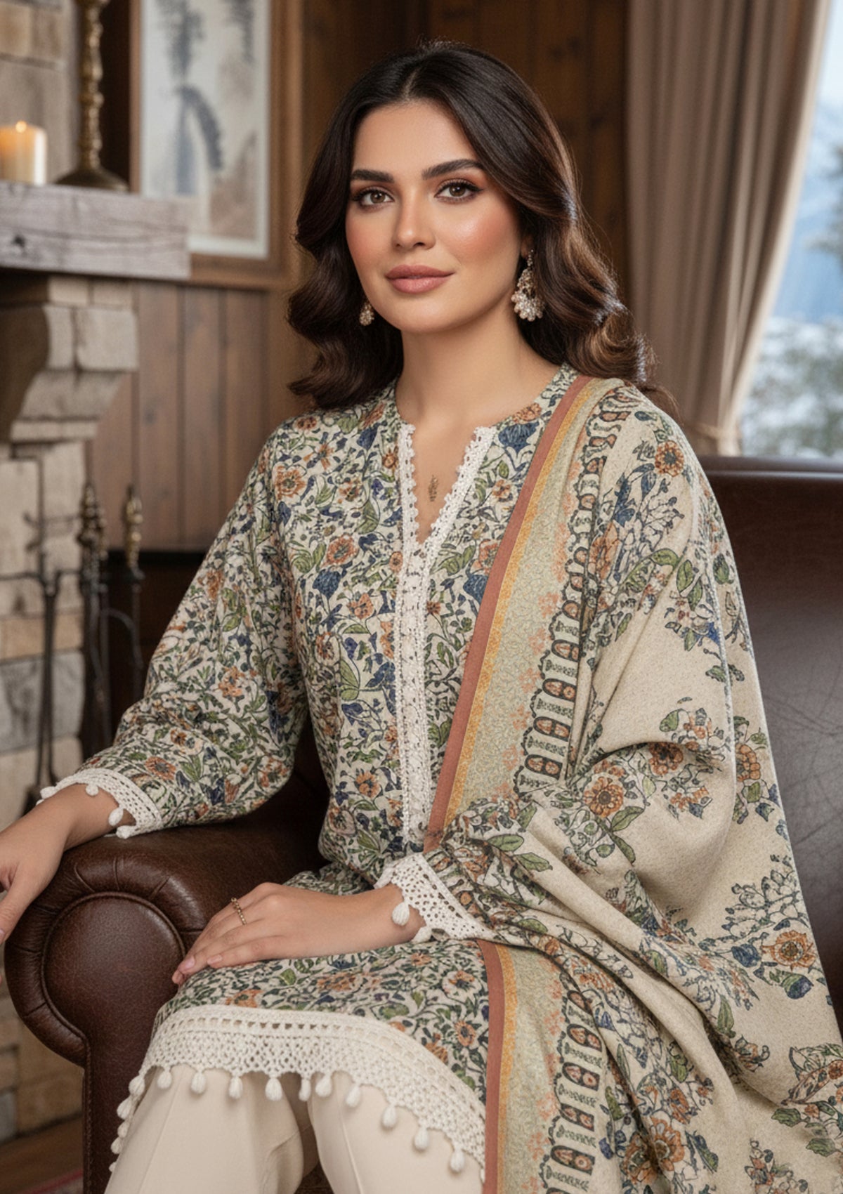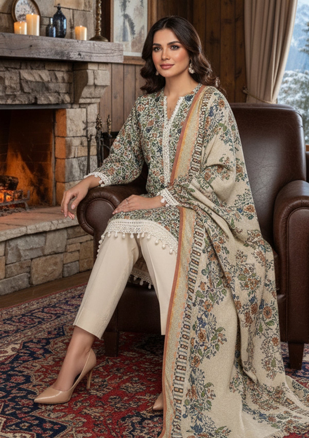 Winter - Riwaj - Printed Marina - 3 Pcs - Wool Shawl 25 - D#61