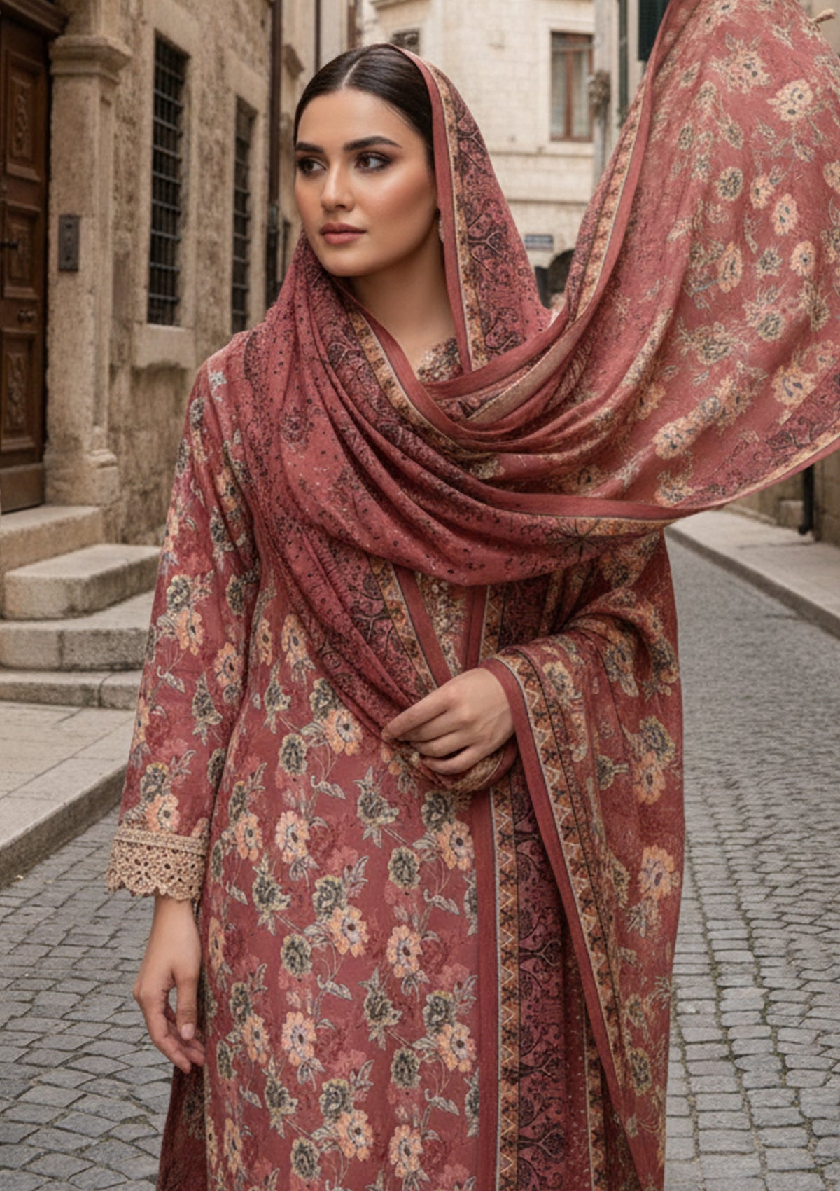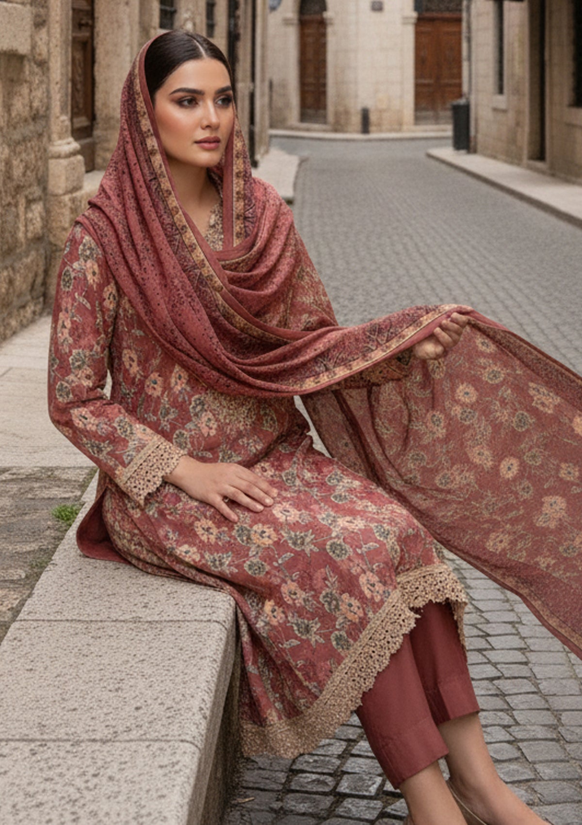 Winter - Riwaj - Printed Marina - 3 Pcs - Wool Shawl 25 - D#87