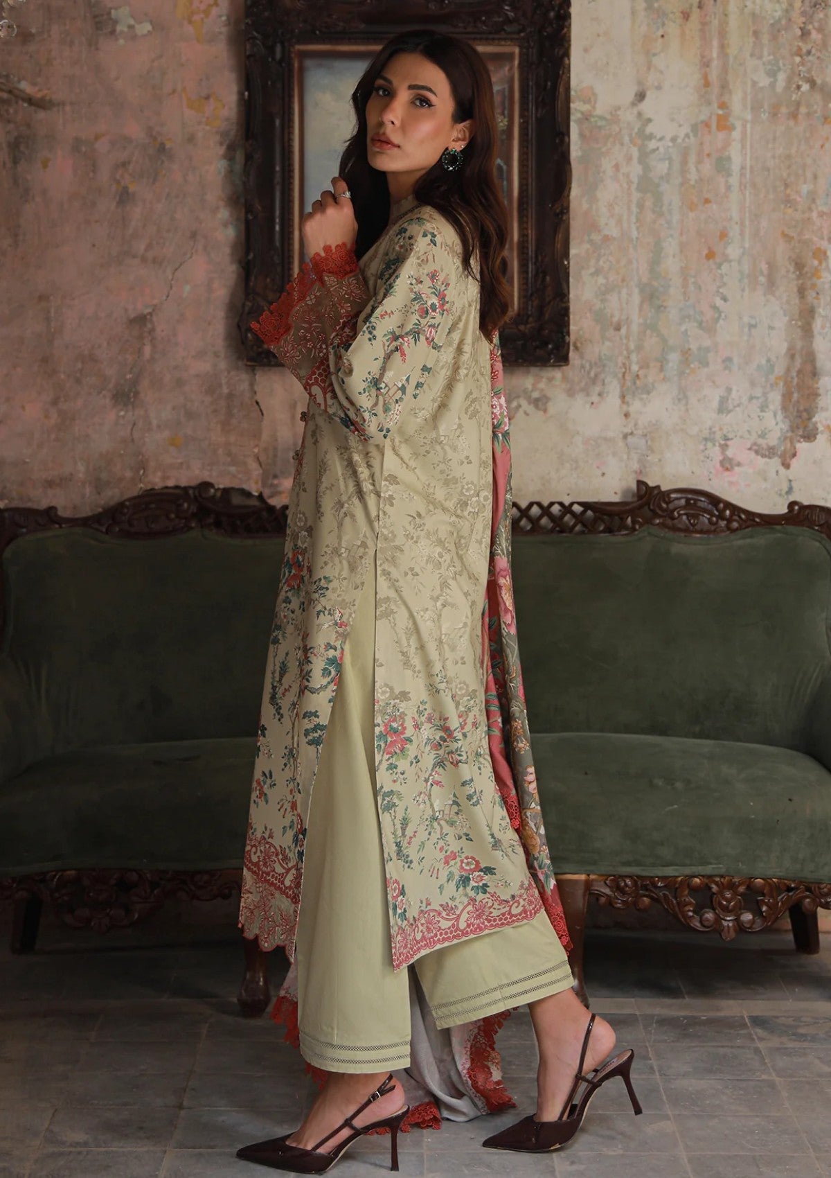 Step into elegance with this graceful Chinese floral inspired ensemble, a beautiful fusion of tradition and modern style.This outfit features a beautiful mix of soft pastel shades of beige and earthy tones perfect for a winter evening. It also has delicate lace accents, intricate embroidered organza neckline and organza border on hem and sleeves that add a touch of femininity.