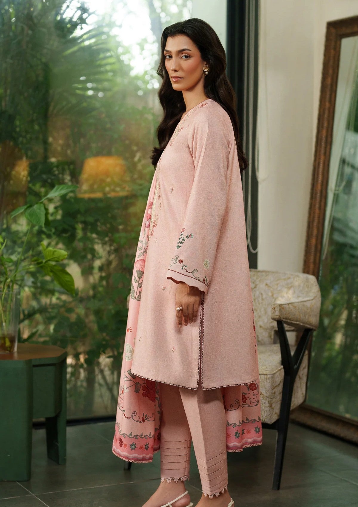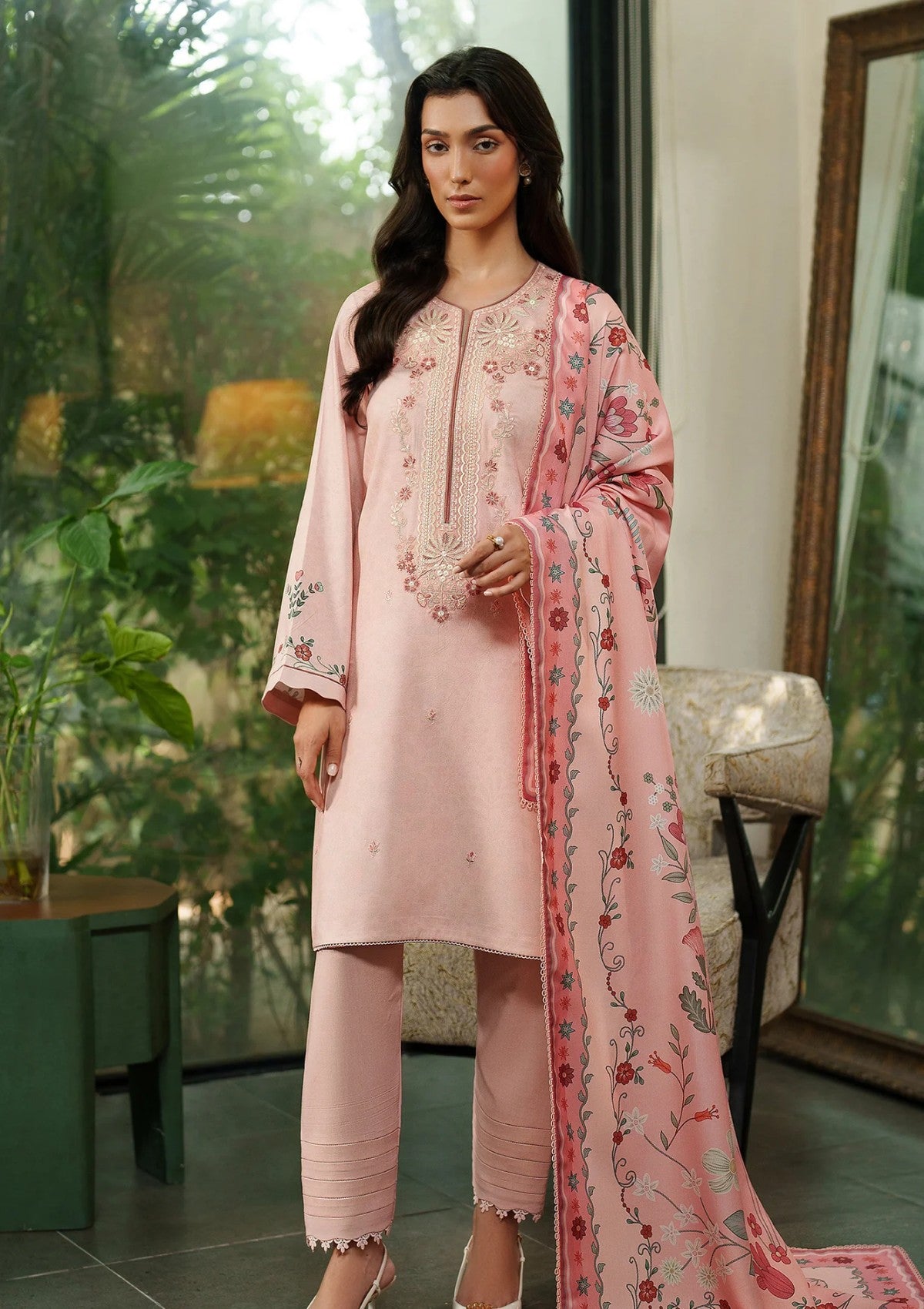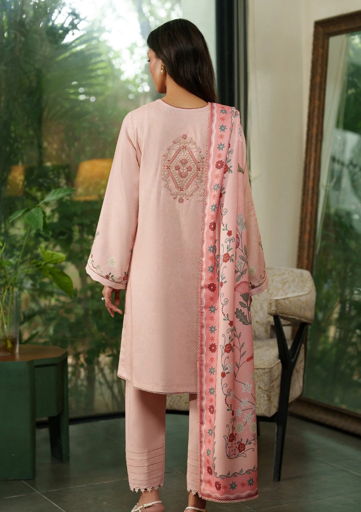 Delicate and graceful, Séralyn is a soft pastel dream in plain viscose, radiating timeless femininity. The shirt features intricate embroidery on the neckline and sleeves, with a subtle motif adorning the back. Paired with plain trousers for refined balance, the look is completed by a printed blended shawl dupatta blooming with floral vines in pink, grey, and soft red, a poetic harmony of elegance and grace.