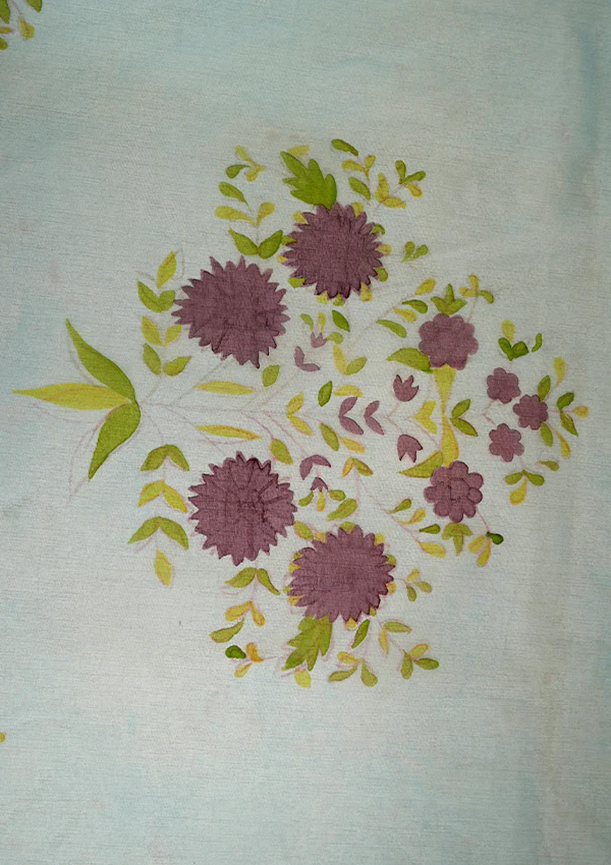 Look attractive with our impressive sky blue hand-painted designer dupatta in with a hint of dark purple and green. The sky blue base along with the floral pattern gives a stunning look to the piece. The calm color makes the dupatta sophisticated.