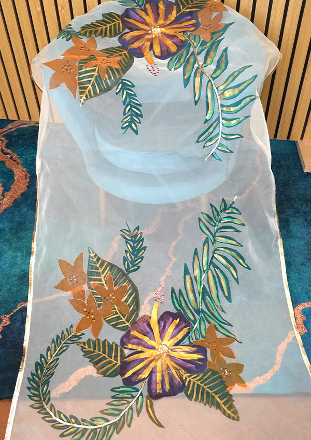 Embellishment: White beads, Golden sequins, Golden kiran lace, Golden Gott