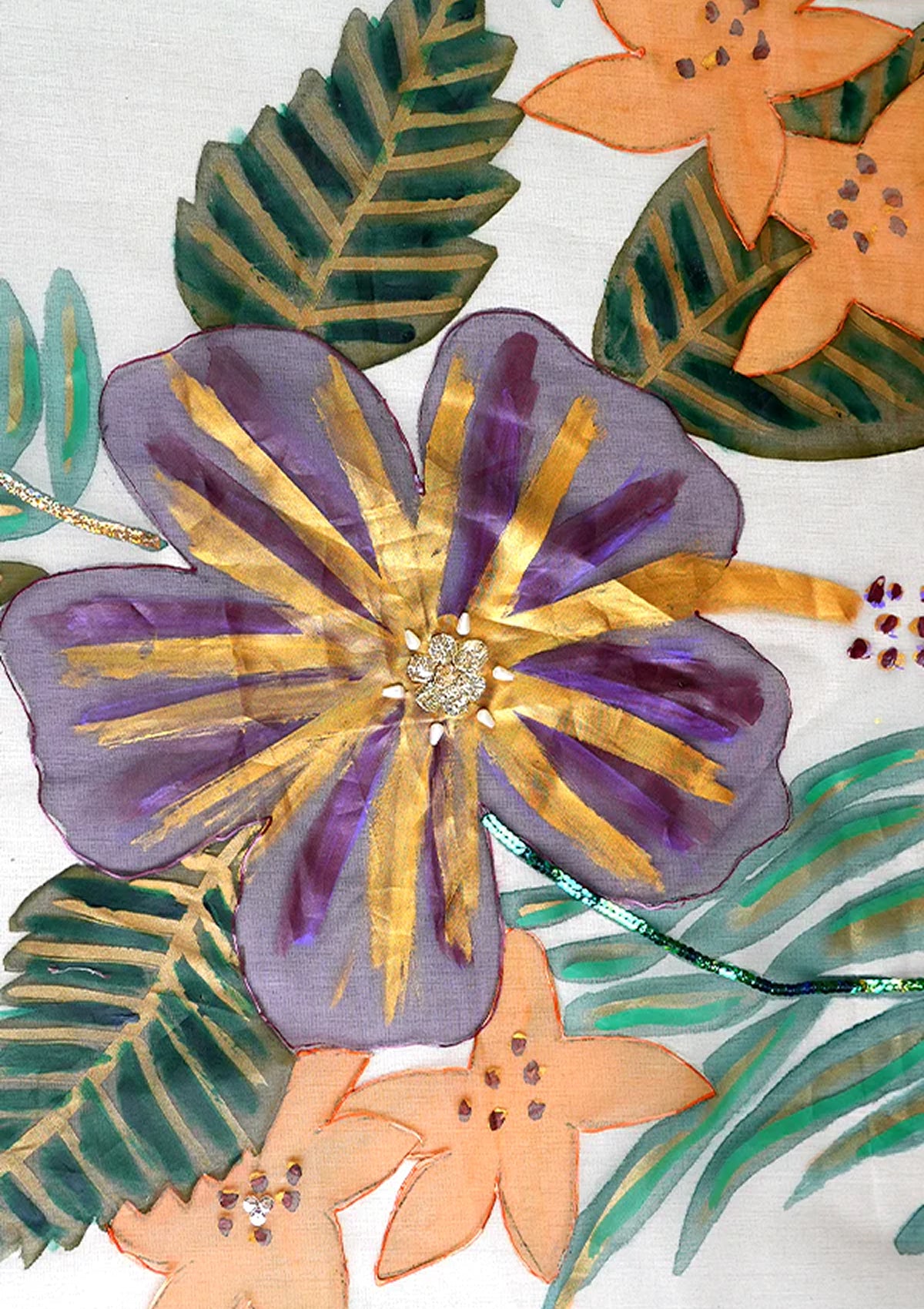Colors used in paint: Purple, Orange, Golden, Green
