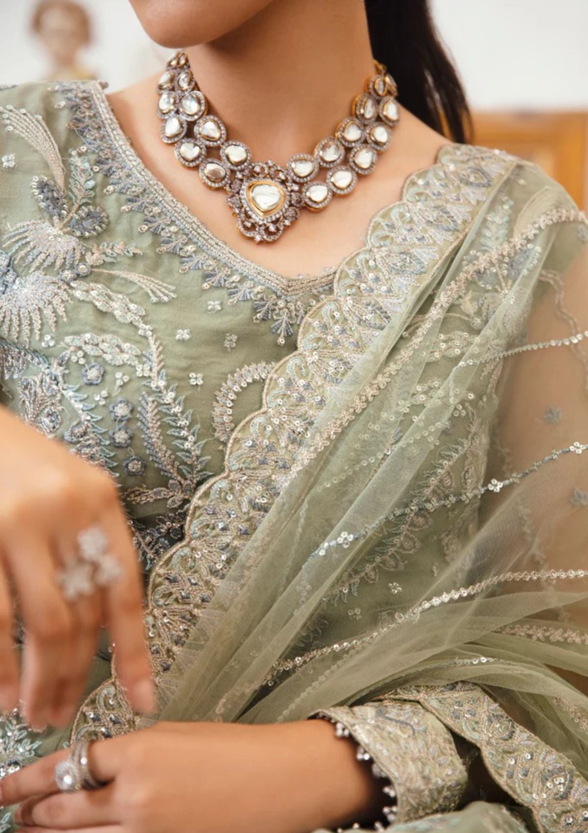 Work Technique: Embroidered & sequinned