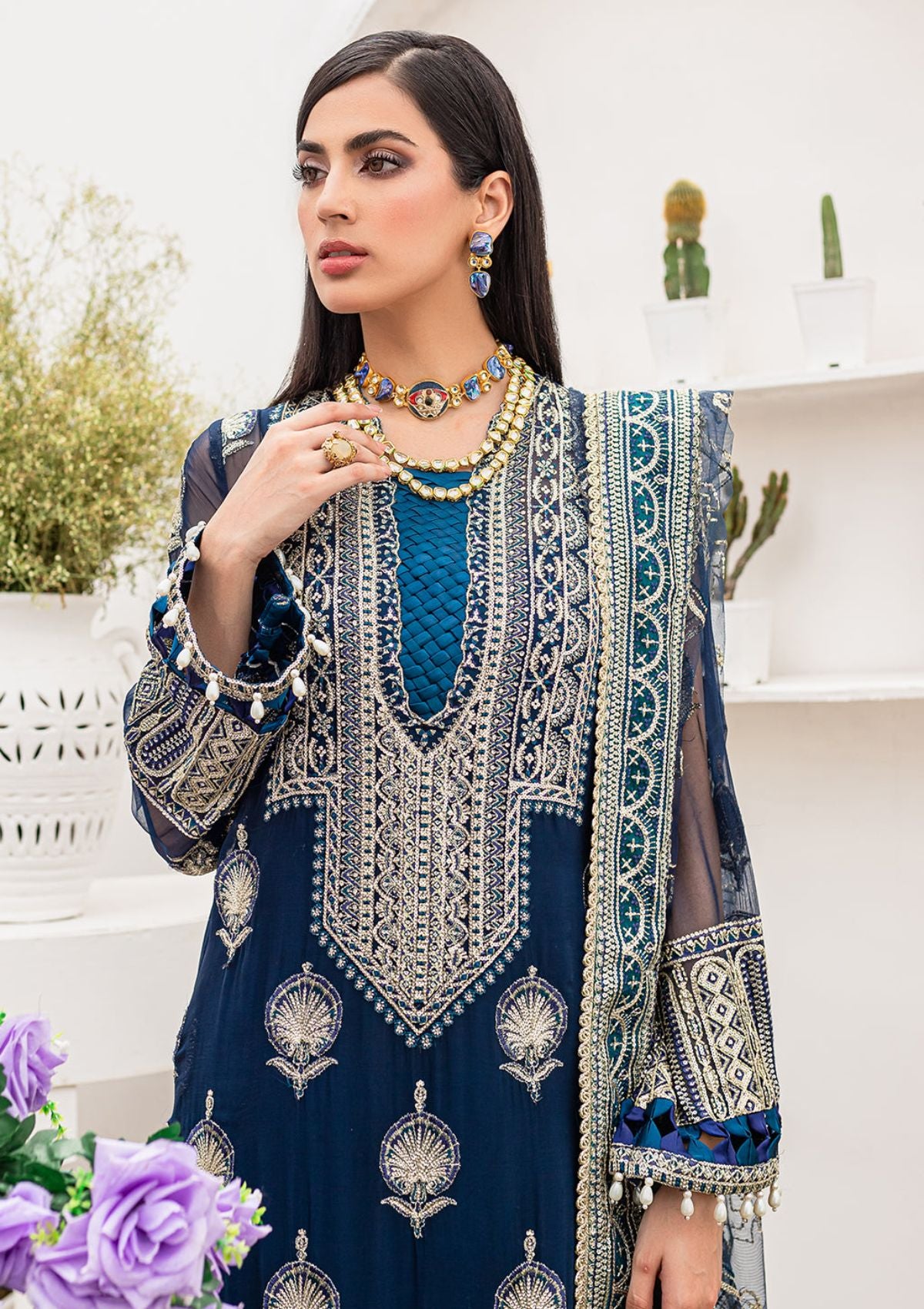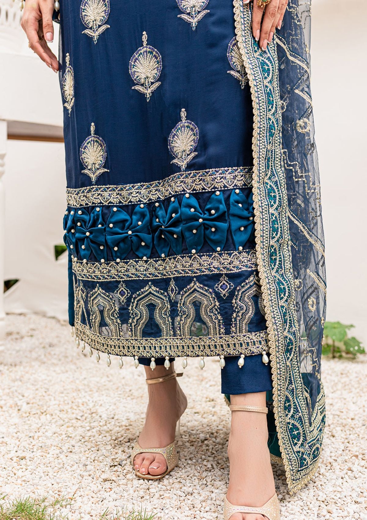 • Embroidered four side border on Organza for Dupatta