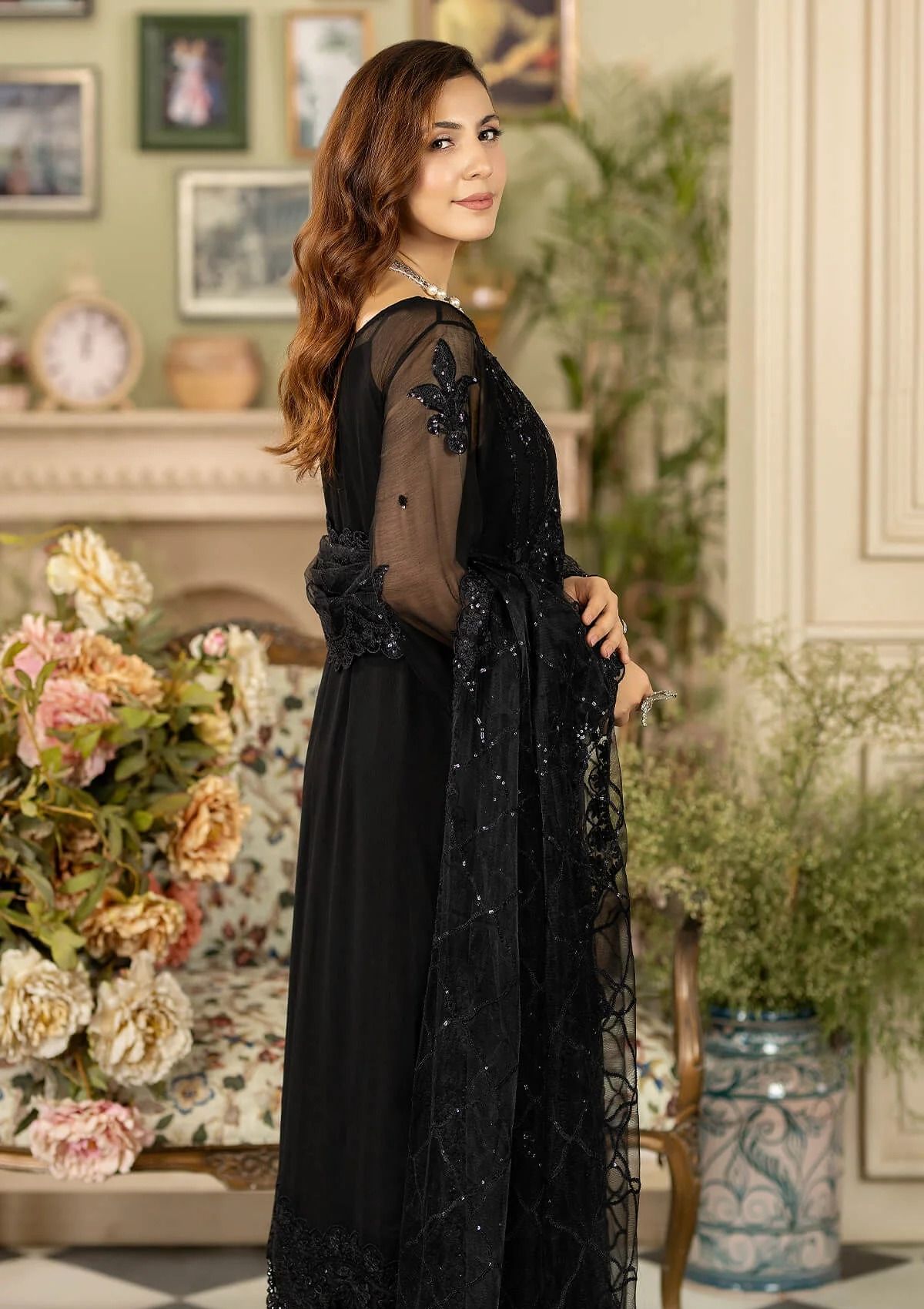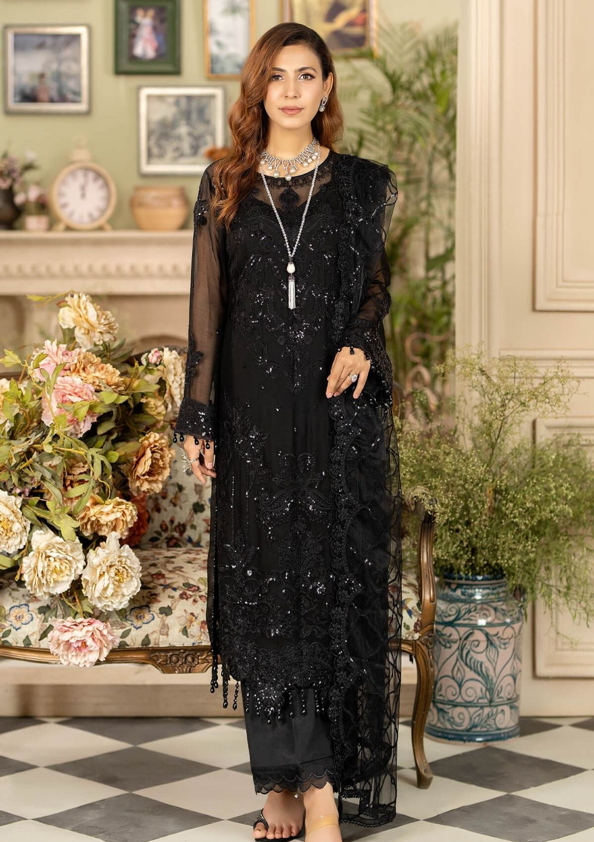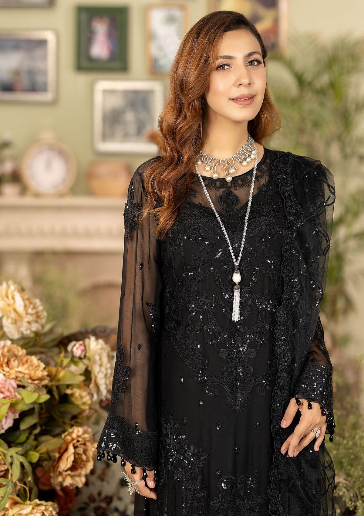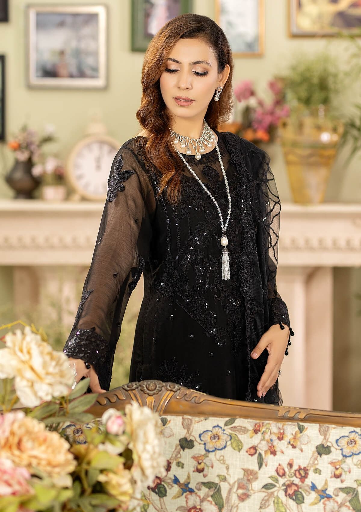 • Embroidered Chiffon for front