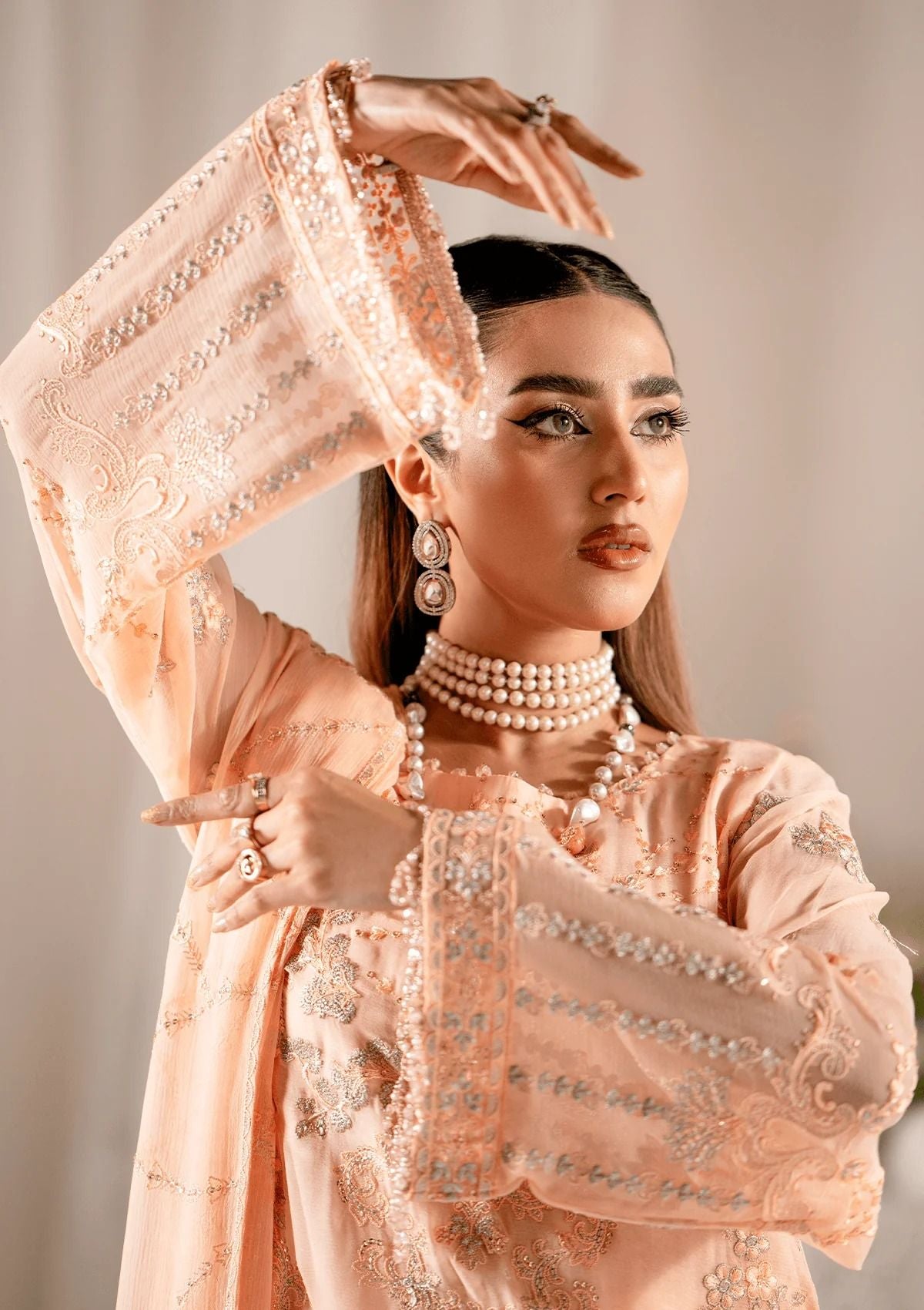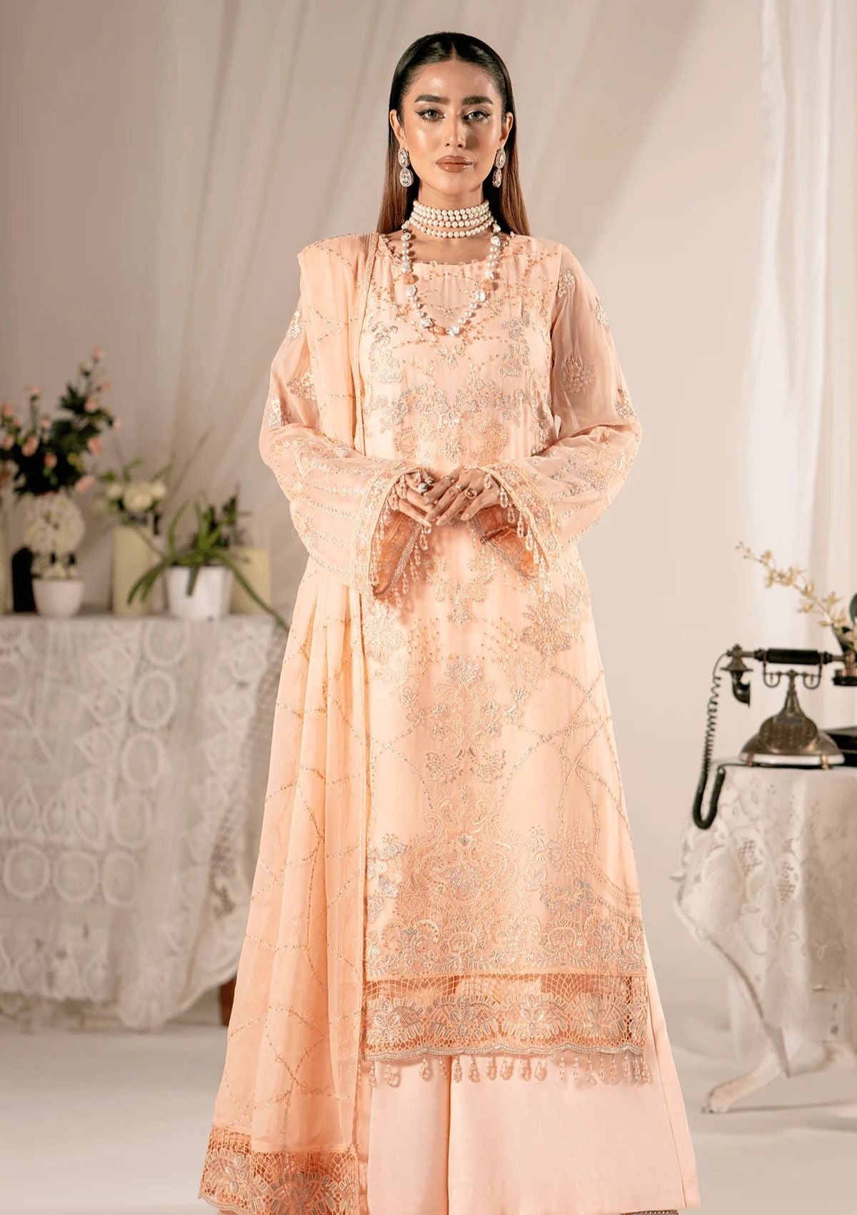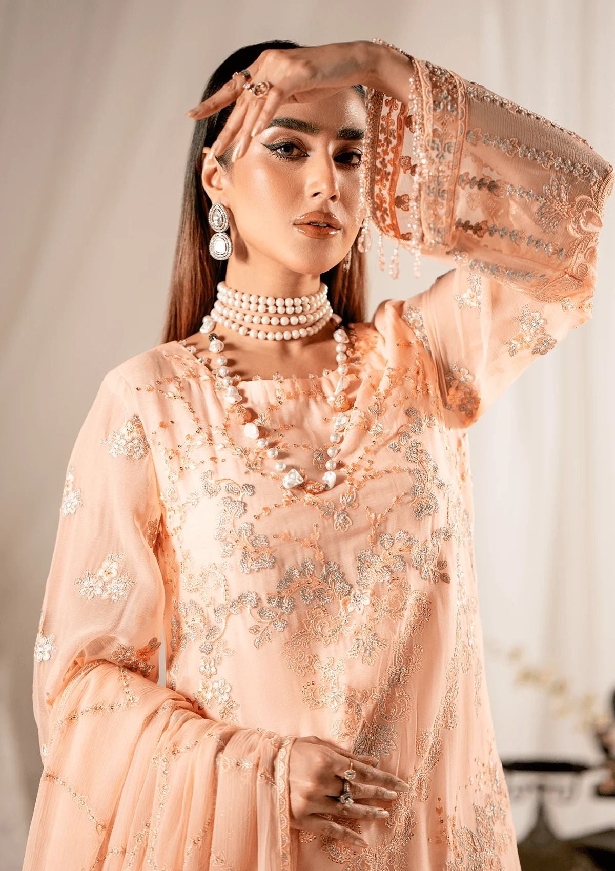 • Embroidered chiffon dupatta and Embroidered Organza pallu