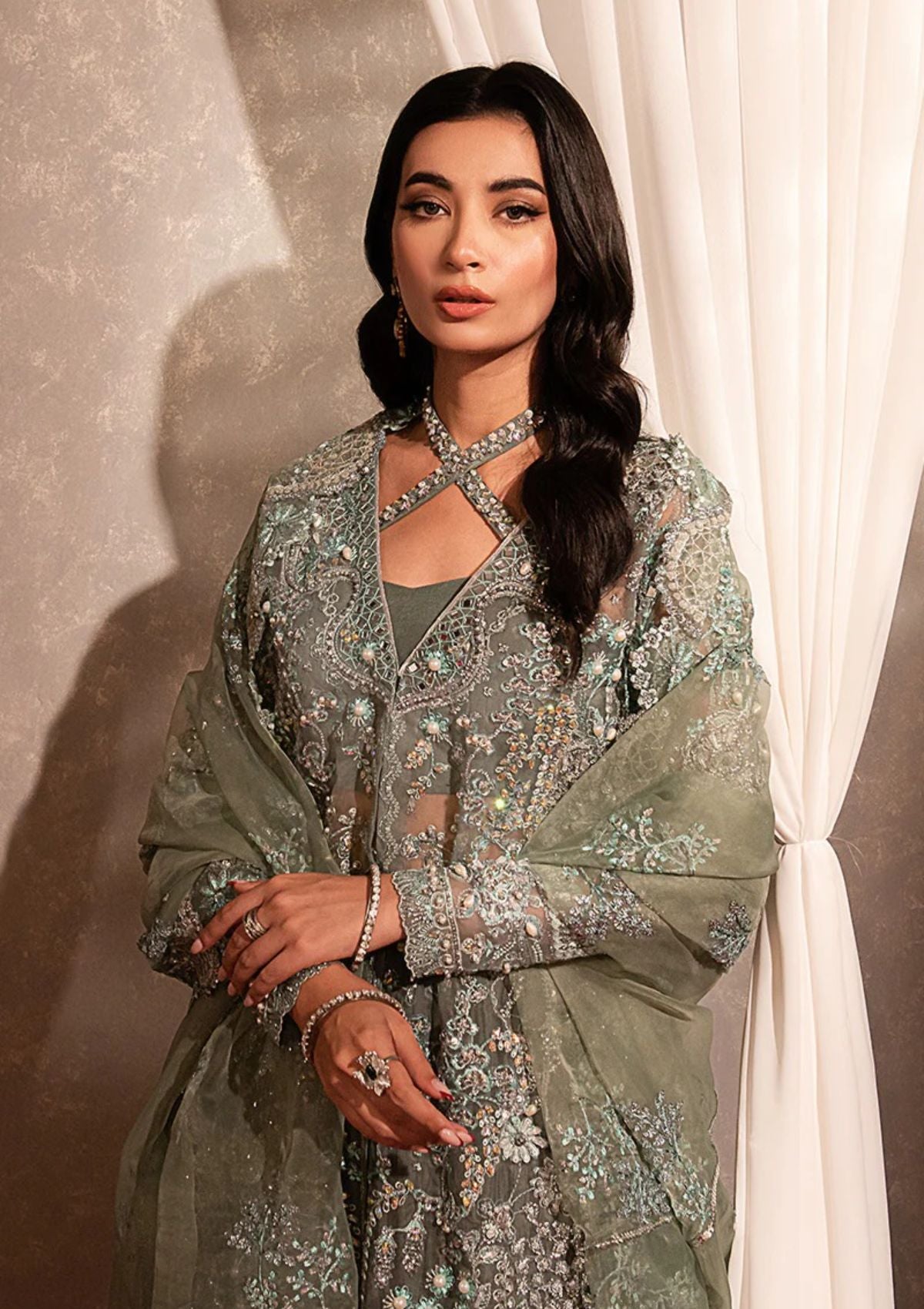 • 0.75M Embroidered Hand Embellished Sleeves on Organza