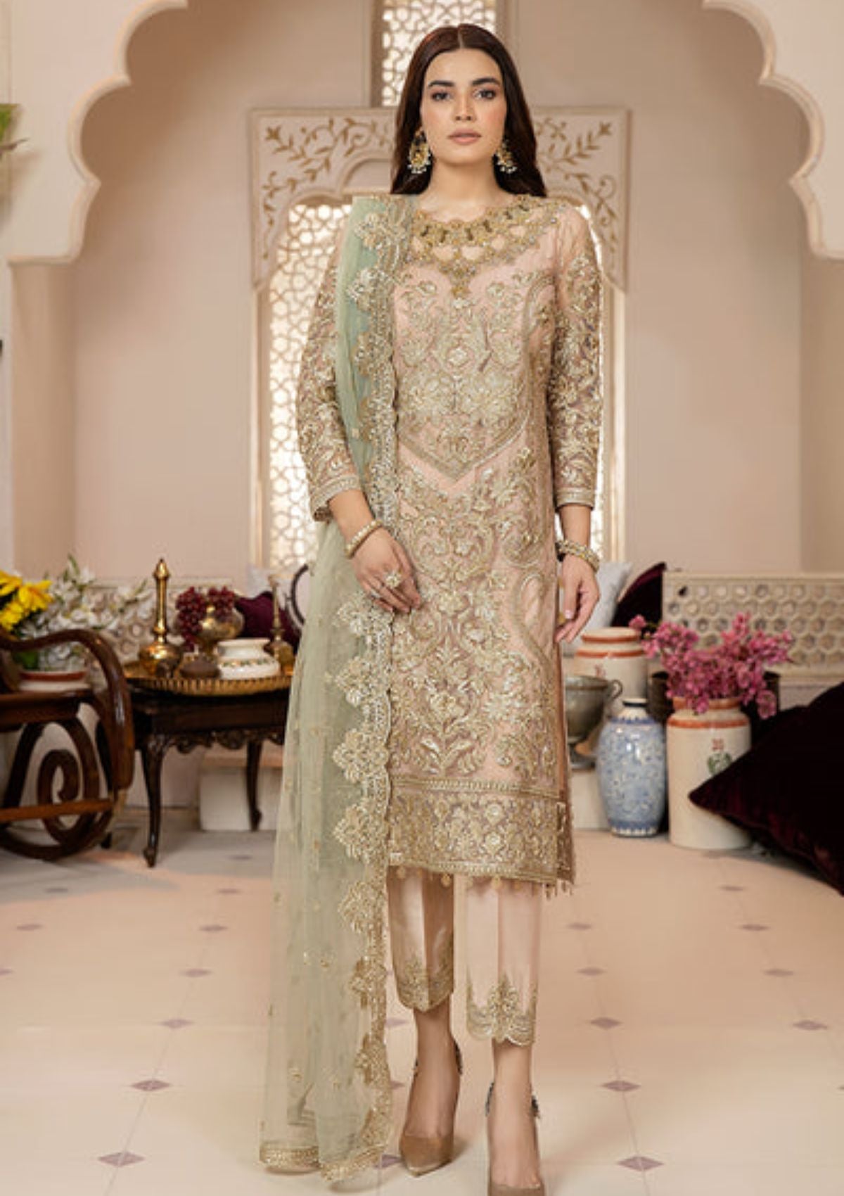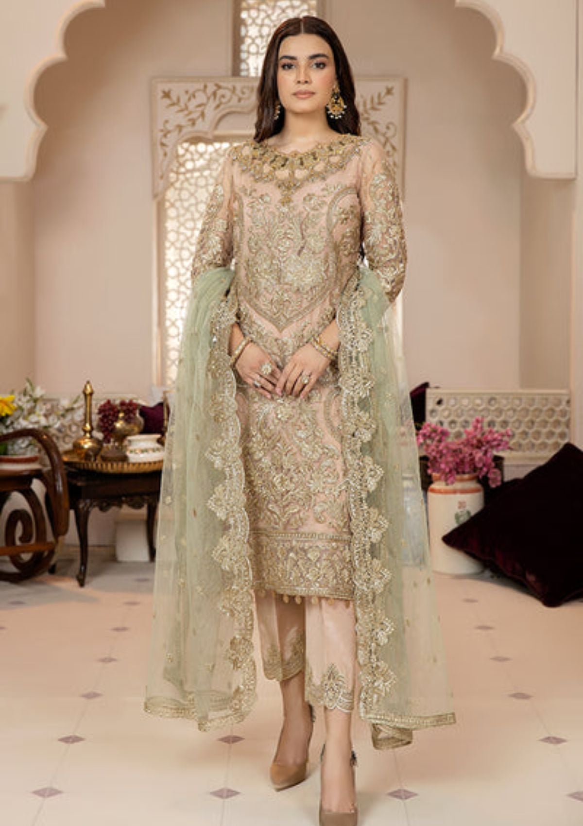 Embroidered net for dupatta.