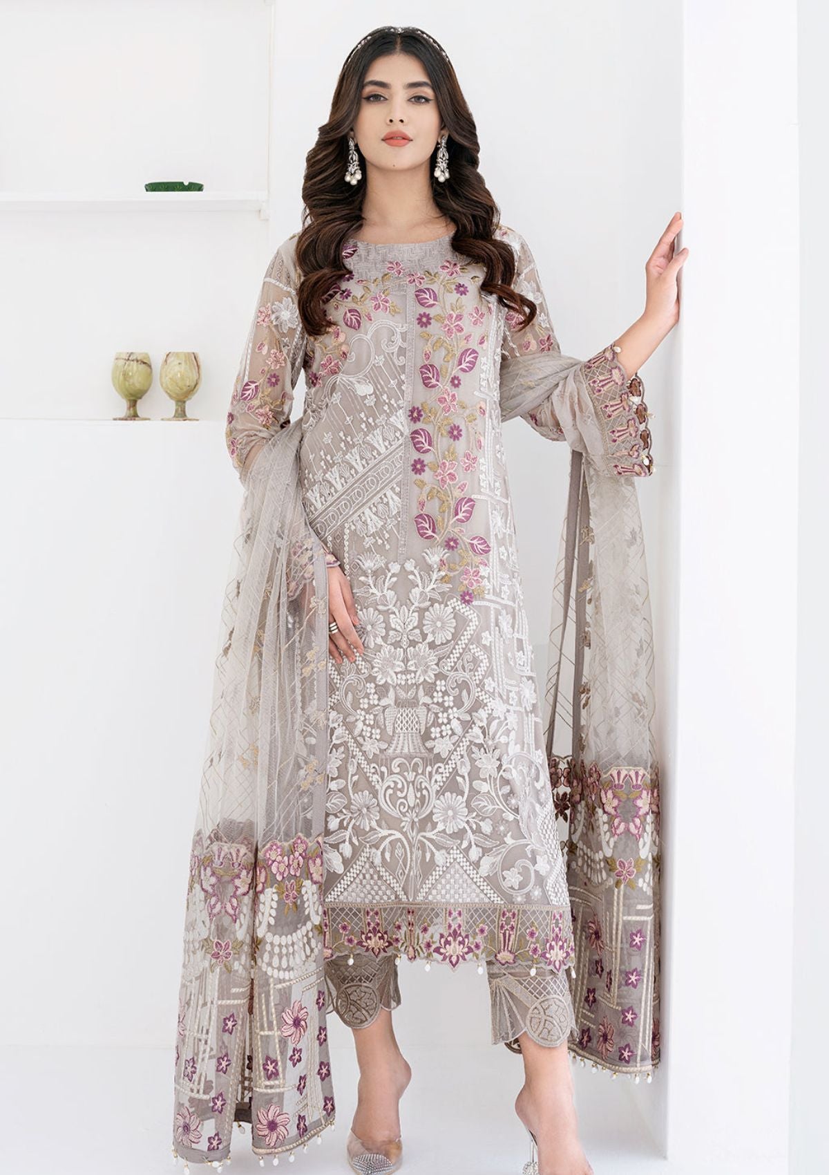 Embroidered net dupatta – 2.50 Meter