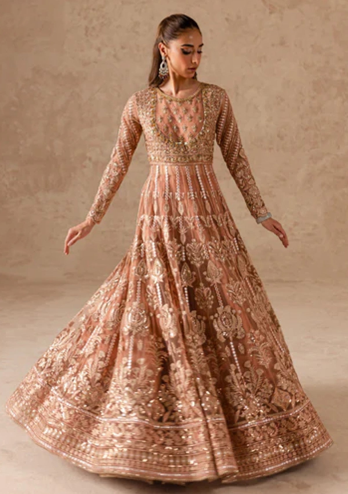 This elegant formal dress is a masterpiece of traditional craftsmanship, adorned with intricate Dabka and Naqshi work that exudes sophistication. The Kashti and Bethki work add refined details, while lustrous Pearls and delicate Drops enhance its luxurious appeal. The shimmering Kanch Moti and Sitara embellishments provide a captivating sparkle, beautifully complemented by graceful Surahi and Kulfi hand work. This dress is a perfect blend of tradition and elegance, ideal for any special occasion.