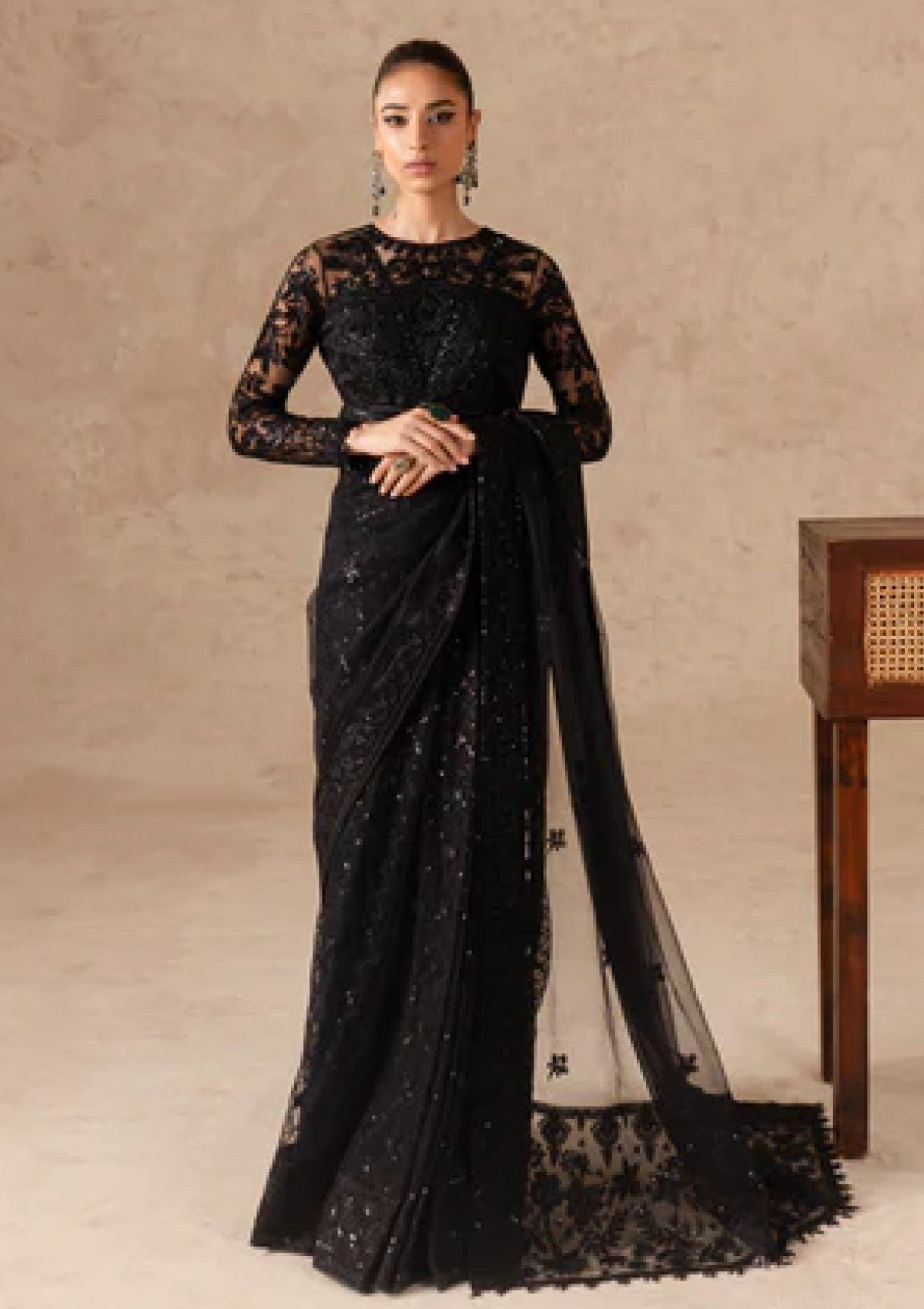 Exude timeless elegance in this luxury black saree, exquisitely hand-embellished with Kanch Moti, Phool Sitara, and Plate Sitara. The intricate detailing is elevated with shimmering crystals, delicate pipe work, and the unique charm of Kulfi and Berfi Sitara, making it a statement piece for any formal occasion.
