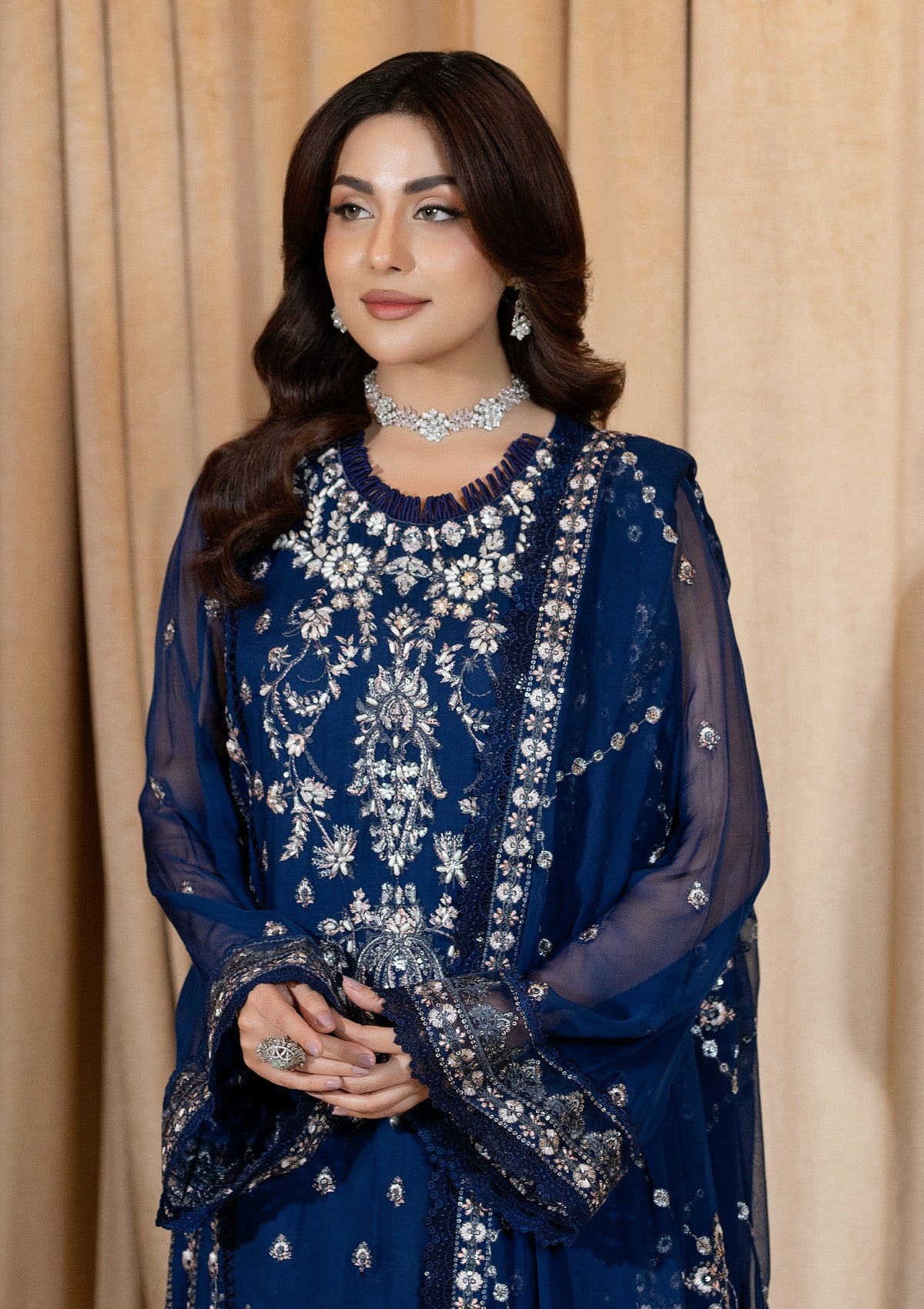 • Bamber Chiffon Embroidered Sleeves