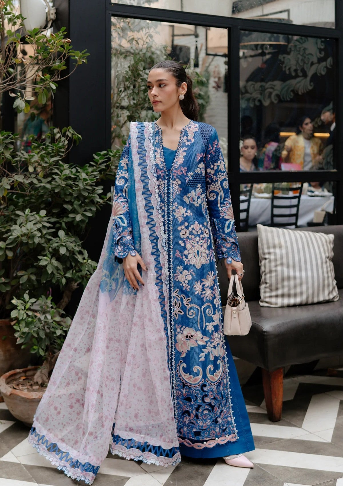• ORGANZA EMBROIDERED DUPATTA 4 SIDE BORDER A (7.90 M)