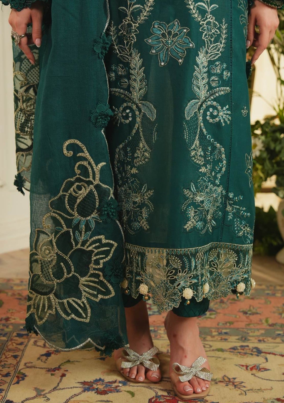 • Organza Embroidered Front Daman Border