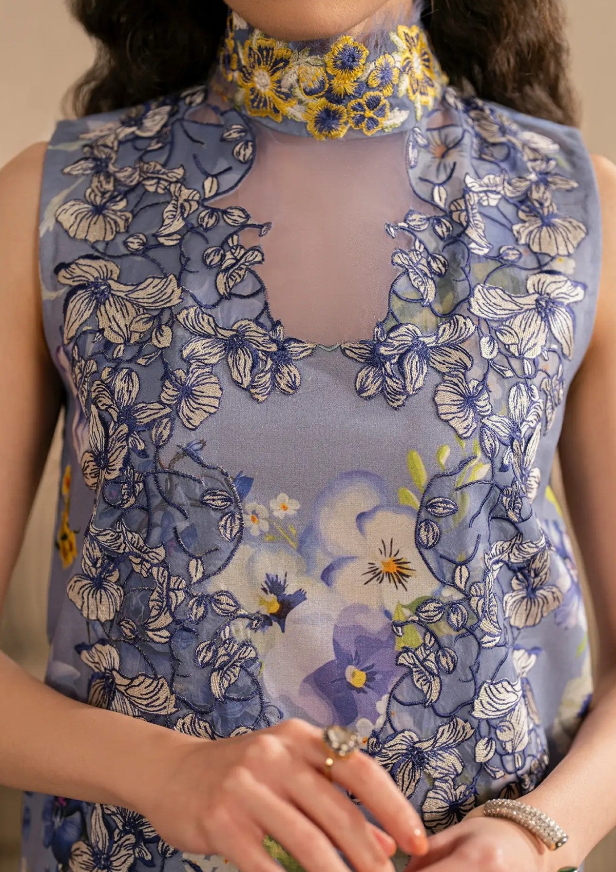 • Embroidered neckline and daman patti for front on organza.
