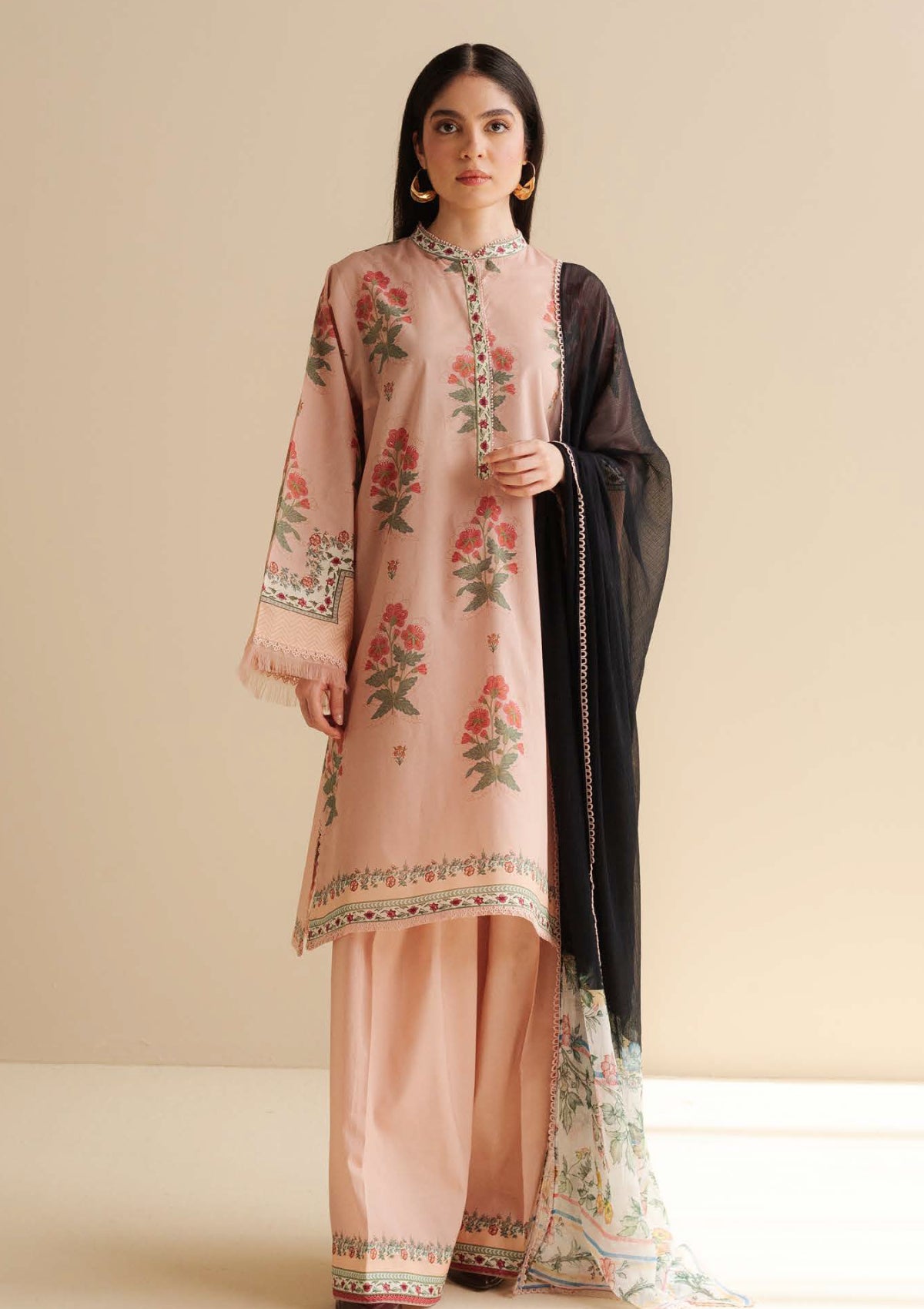 A light floral-printed base in summery hues complemented by tailored trousers and a light dupatta that flows with effortless grace.