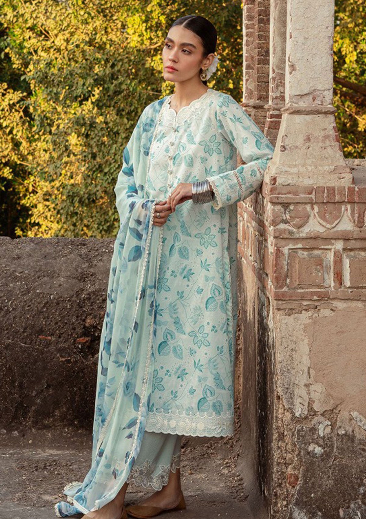 • Lawn embroidered front and sleeves, dyed back