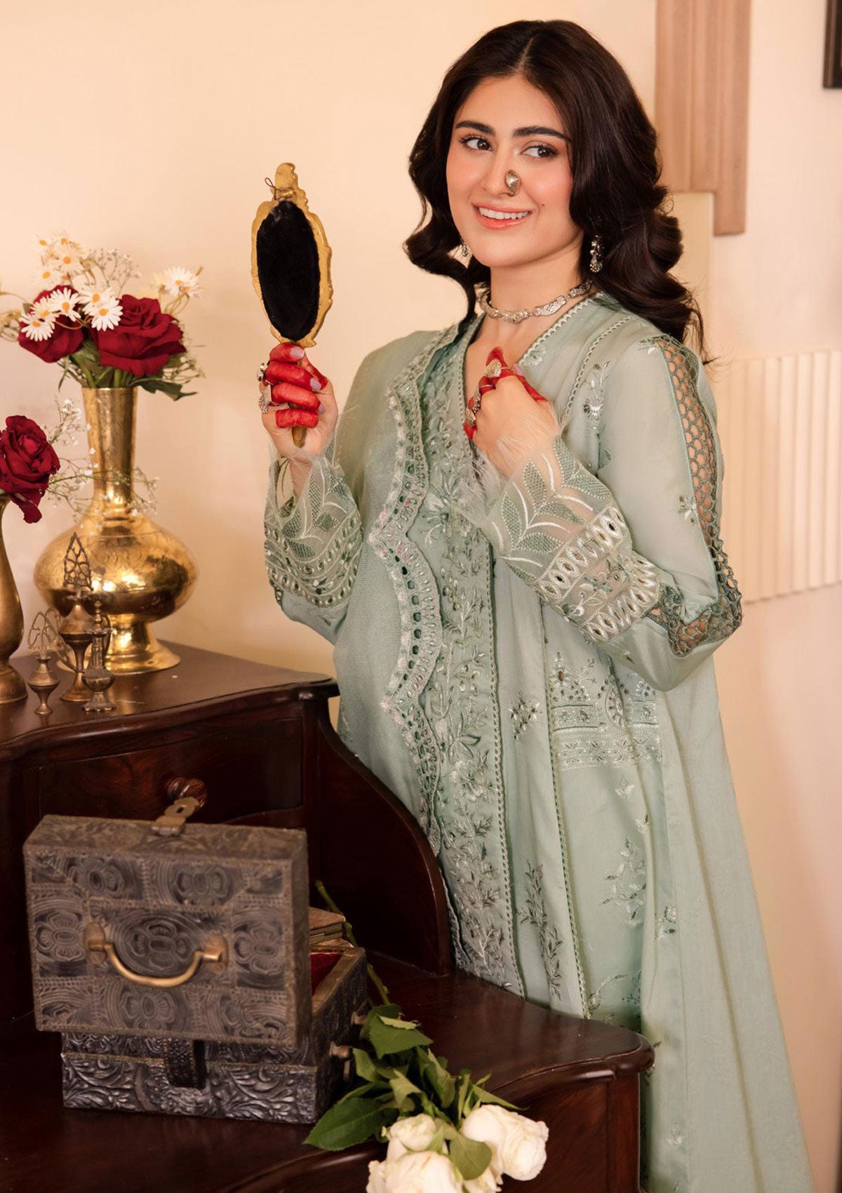 • Dupatta Lace: Borer Embroidered Organza (7.5 m)