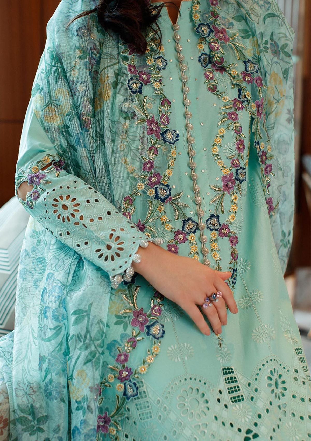 • - Embroidered lawn back and sleeves