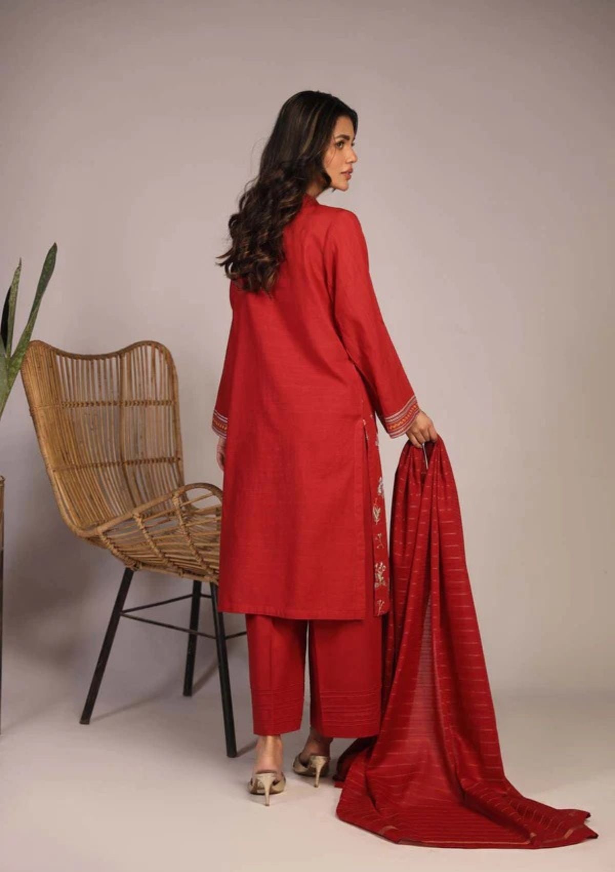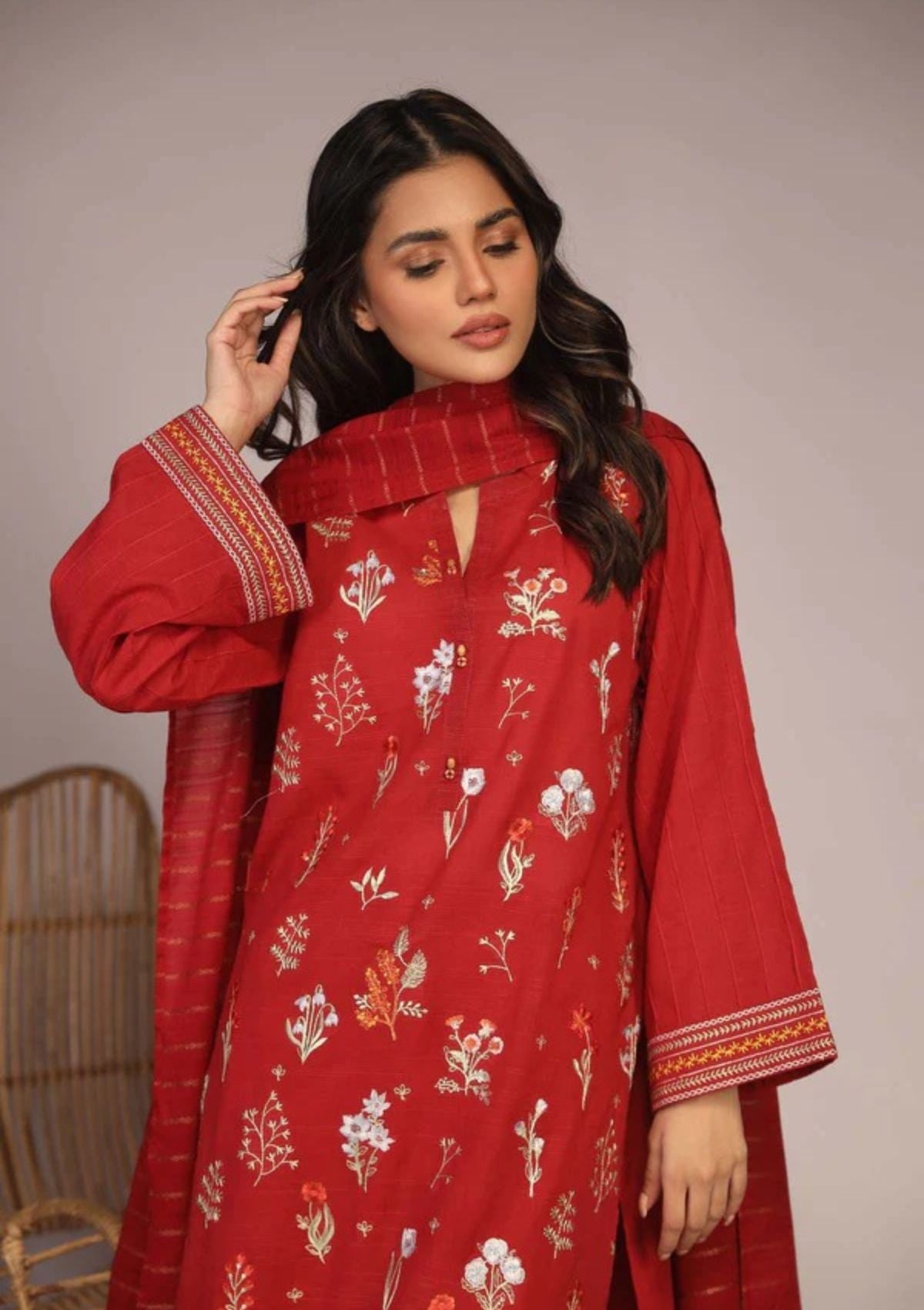 1-Dyed Embroidered Slub Lawn Shirt 3.00