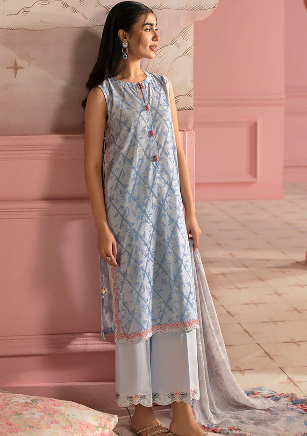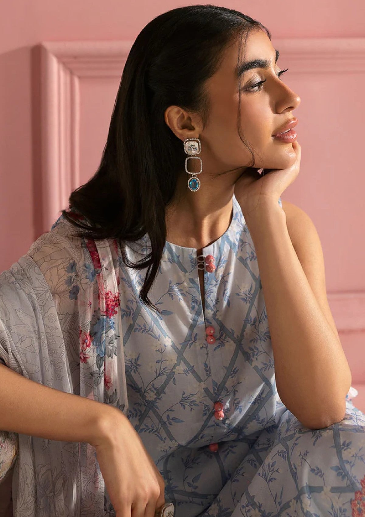 This AQUA ICE-3PC printed lawn suit includes a lawn printed shirt with 40" embroidered patti for the hem and 60" embroidered patti for the sleeves. The cambric dyed trouser and chiffon printed dupatta complete the elegant and stylish ensemble. Elevate your wardrobe with this expertly crafted, high-quality suit.