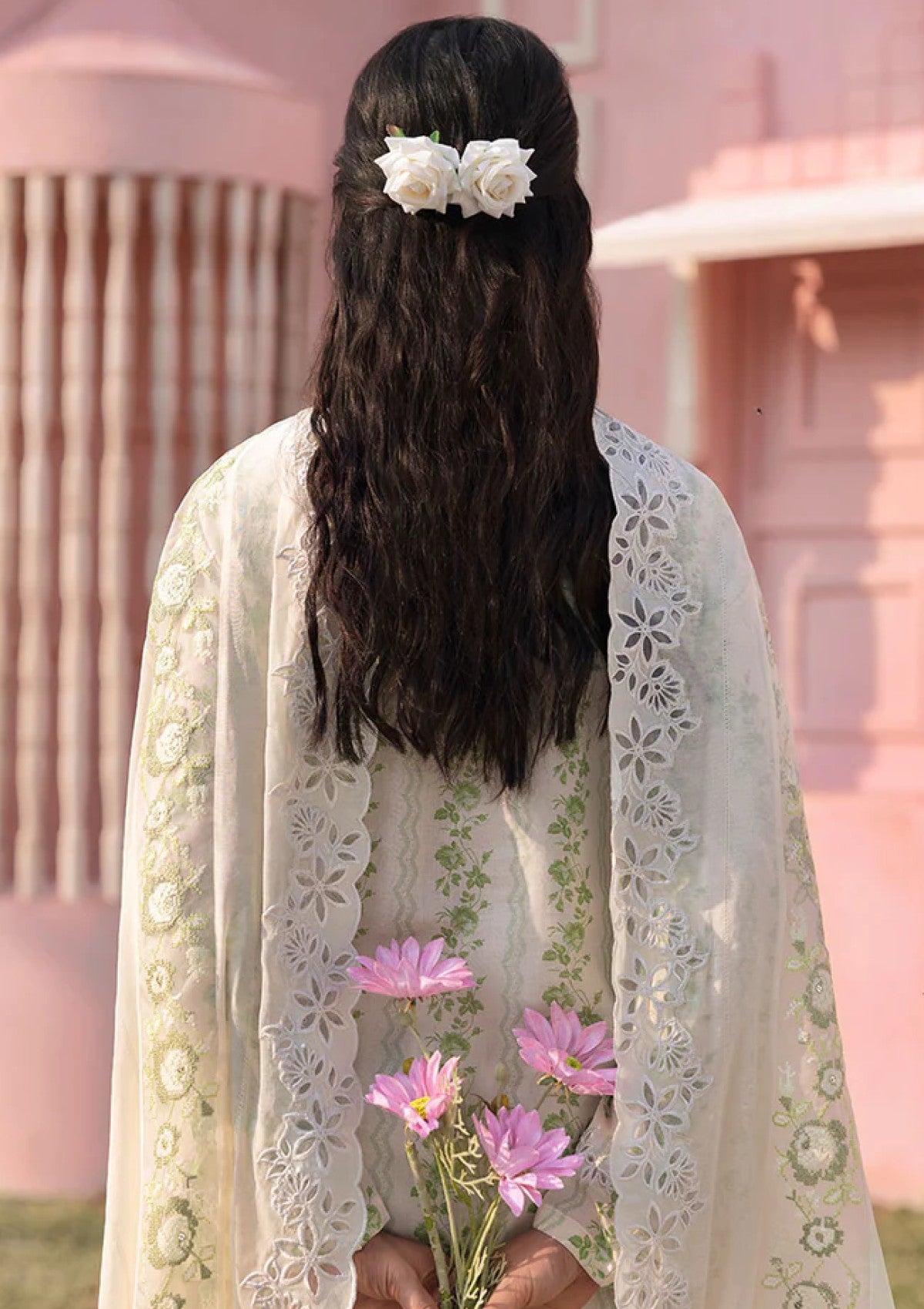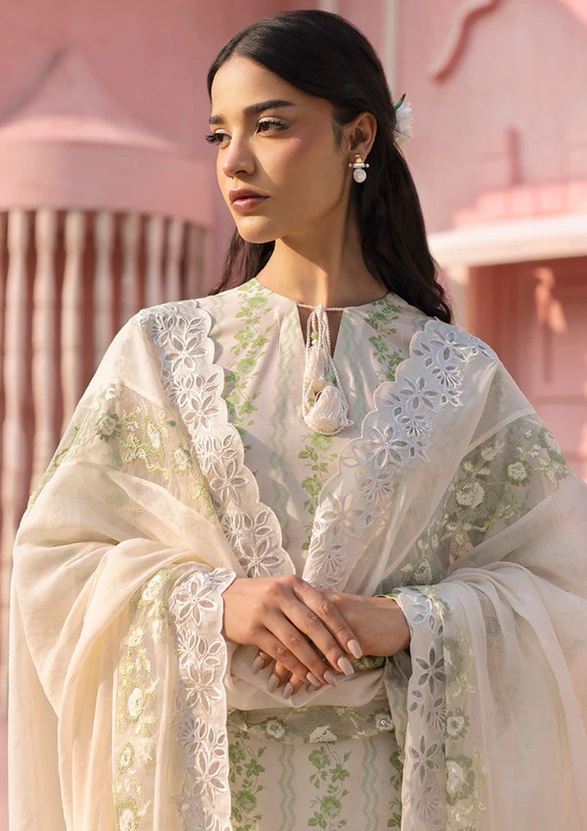 This lawn suit features a beautifully printed shirt with a 100" embroidered patti for added elegance. The cambric dyed trouser offers comfort and style, while the silk embroidered applique dupatta completes the look. Upgrade your wardrobe with this must-have suit.