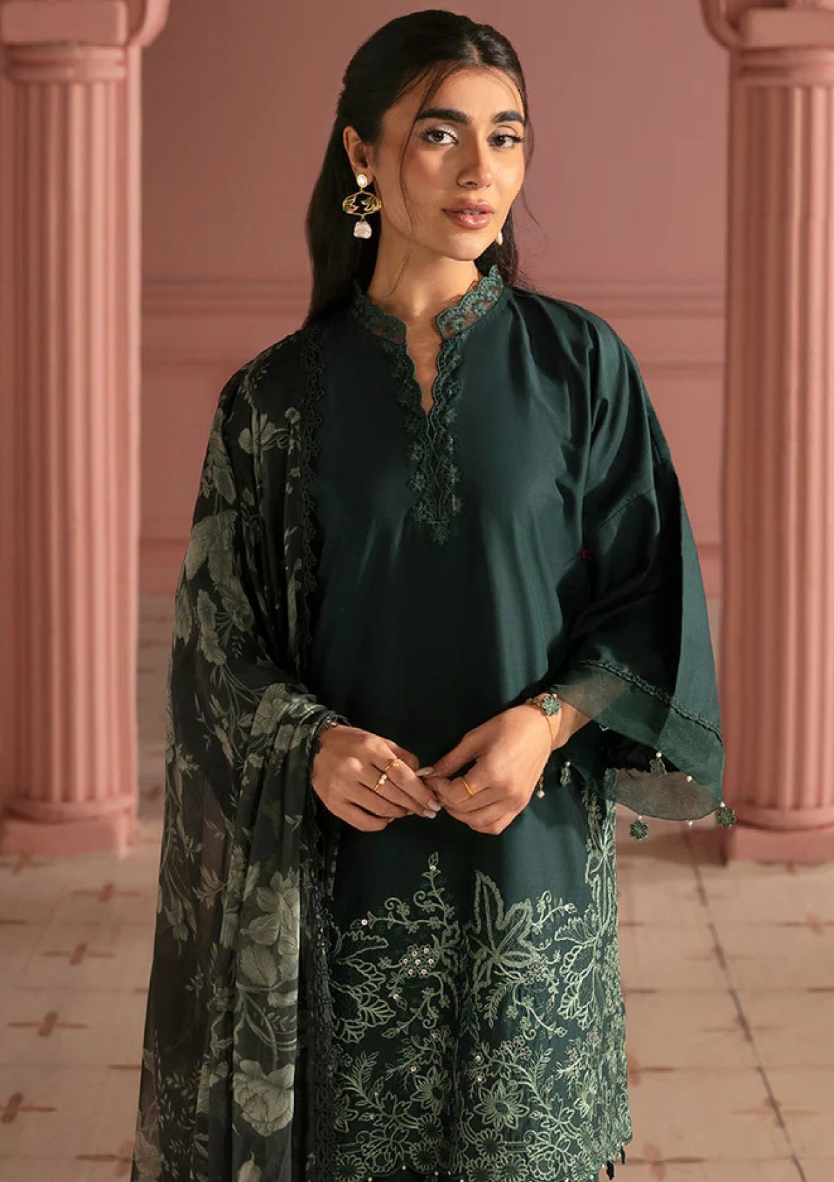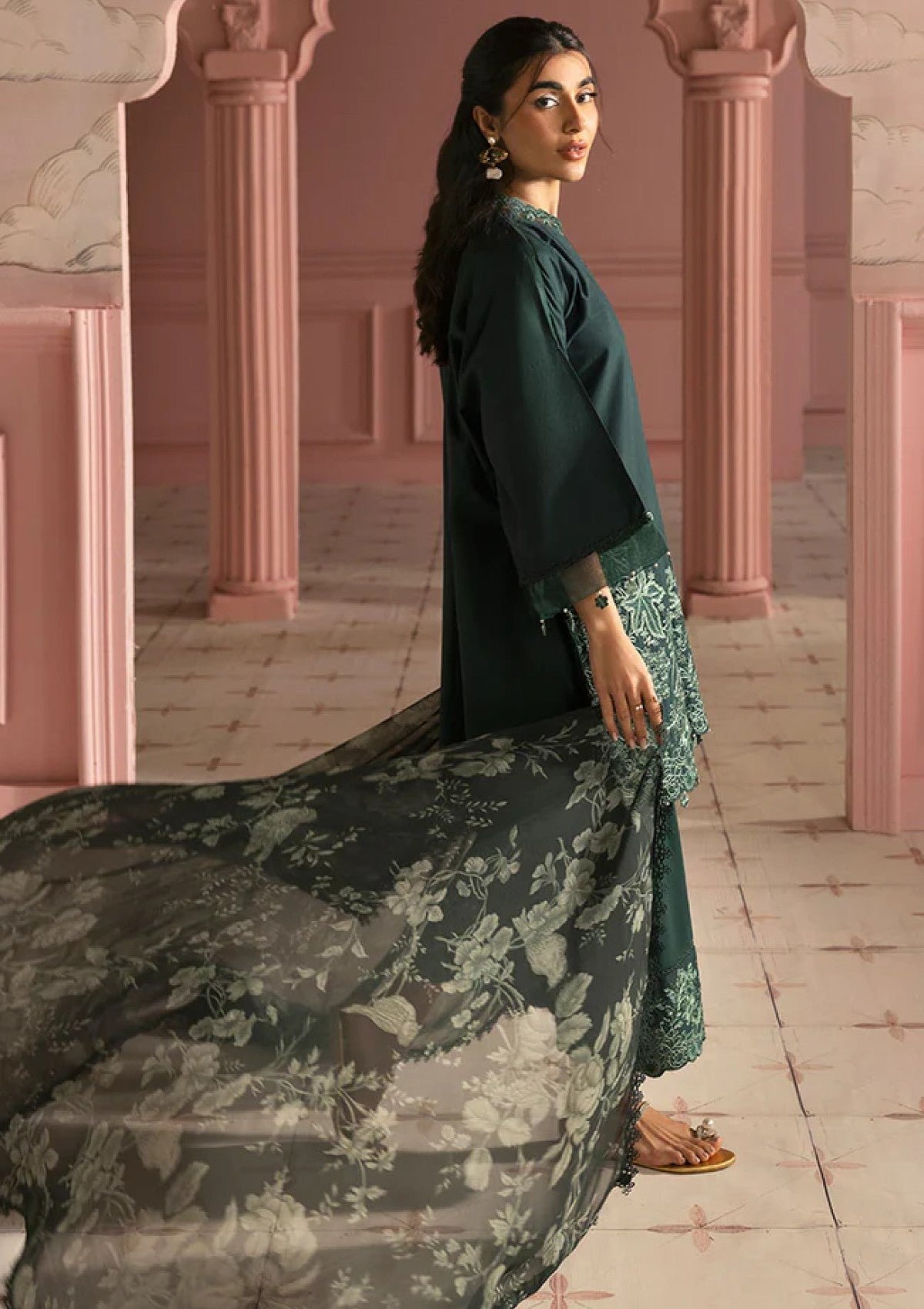This Viridian Green 3pc Printed Lawn Suit boasts a beautifully embroidered front and sleeves on its lightweight lawn fabric. The dyed back and cambric trouser add to its elegant design. Complete the look with the chiffon printed dupatta. Experience style and comfort in one ensemble