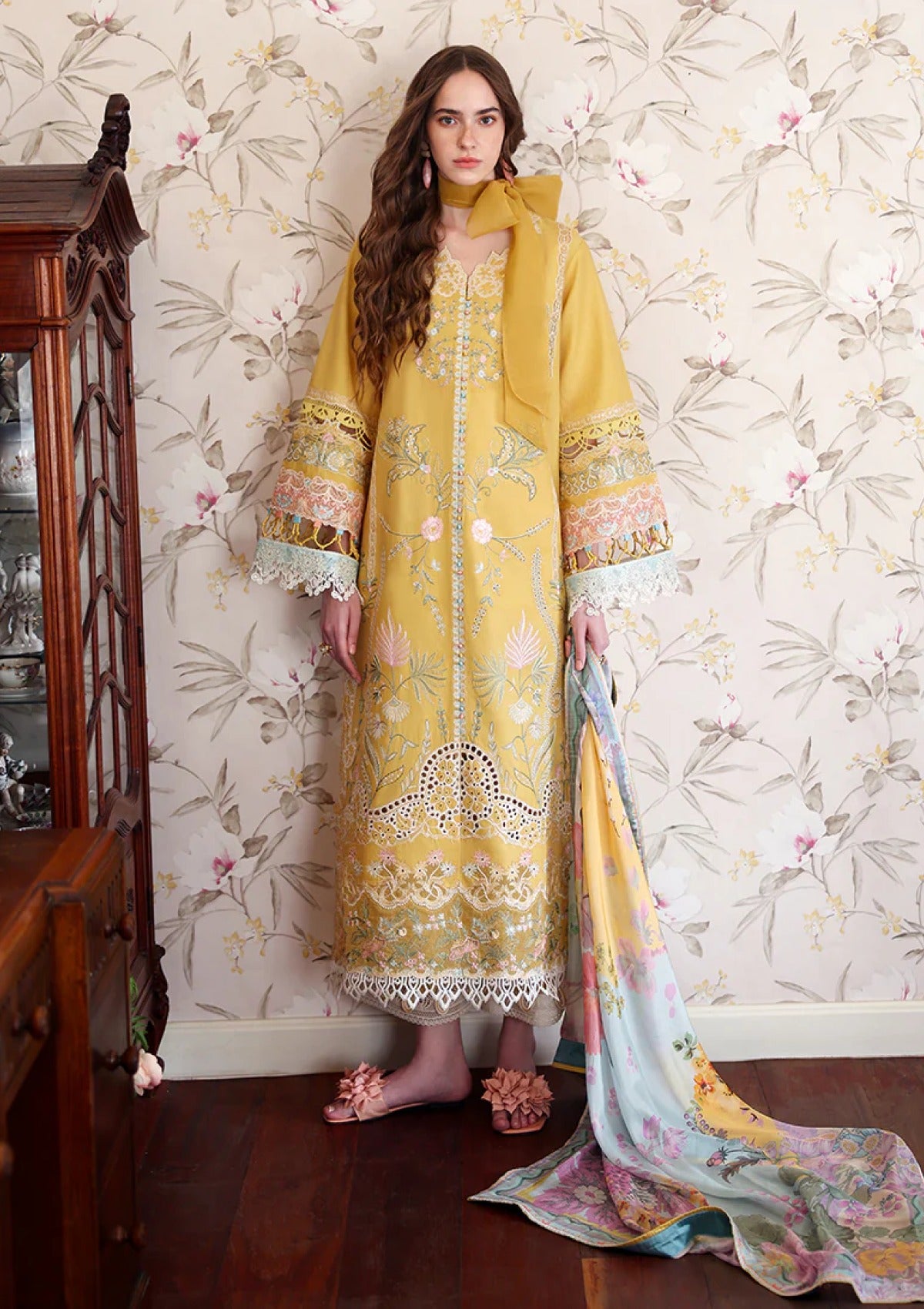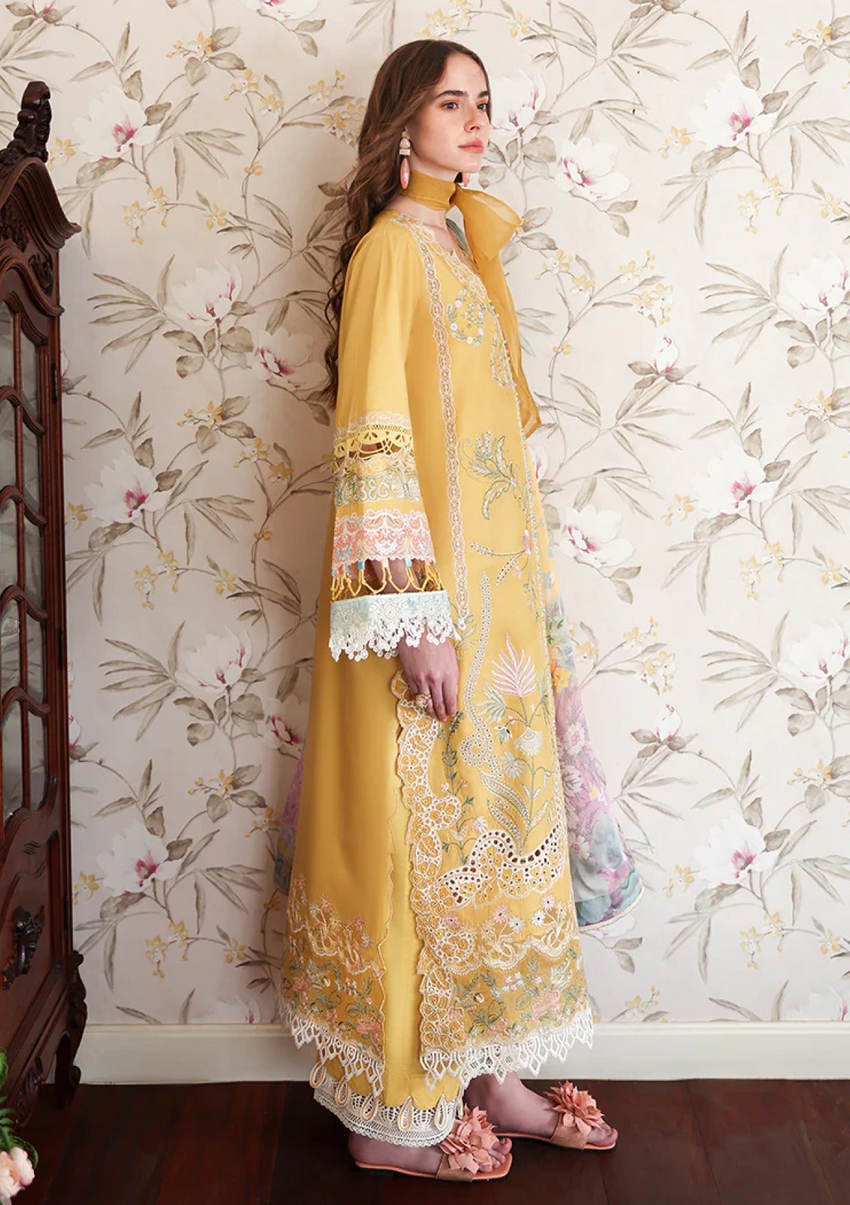 • Chikan embroidered lawn front left panel