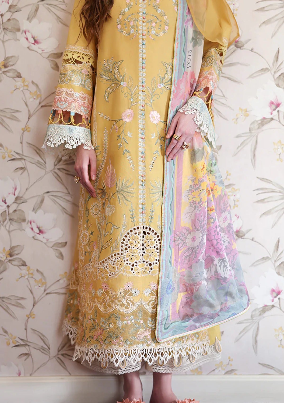 • Chikan embroidered lawn front right panel