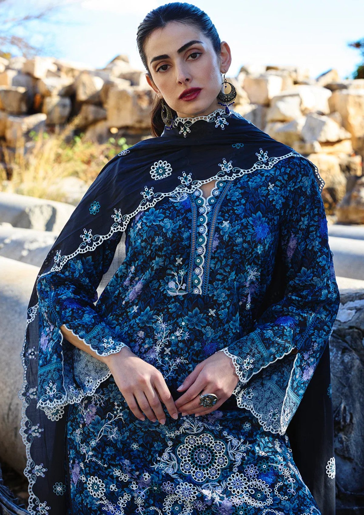 Zerina in Black from our Spring Printkari '25 Collection. A printed cutwork embroidered cotton 3-piece outfit paired with dyed voile embroidered dupatta.