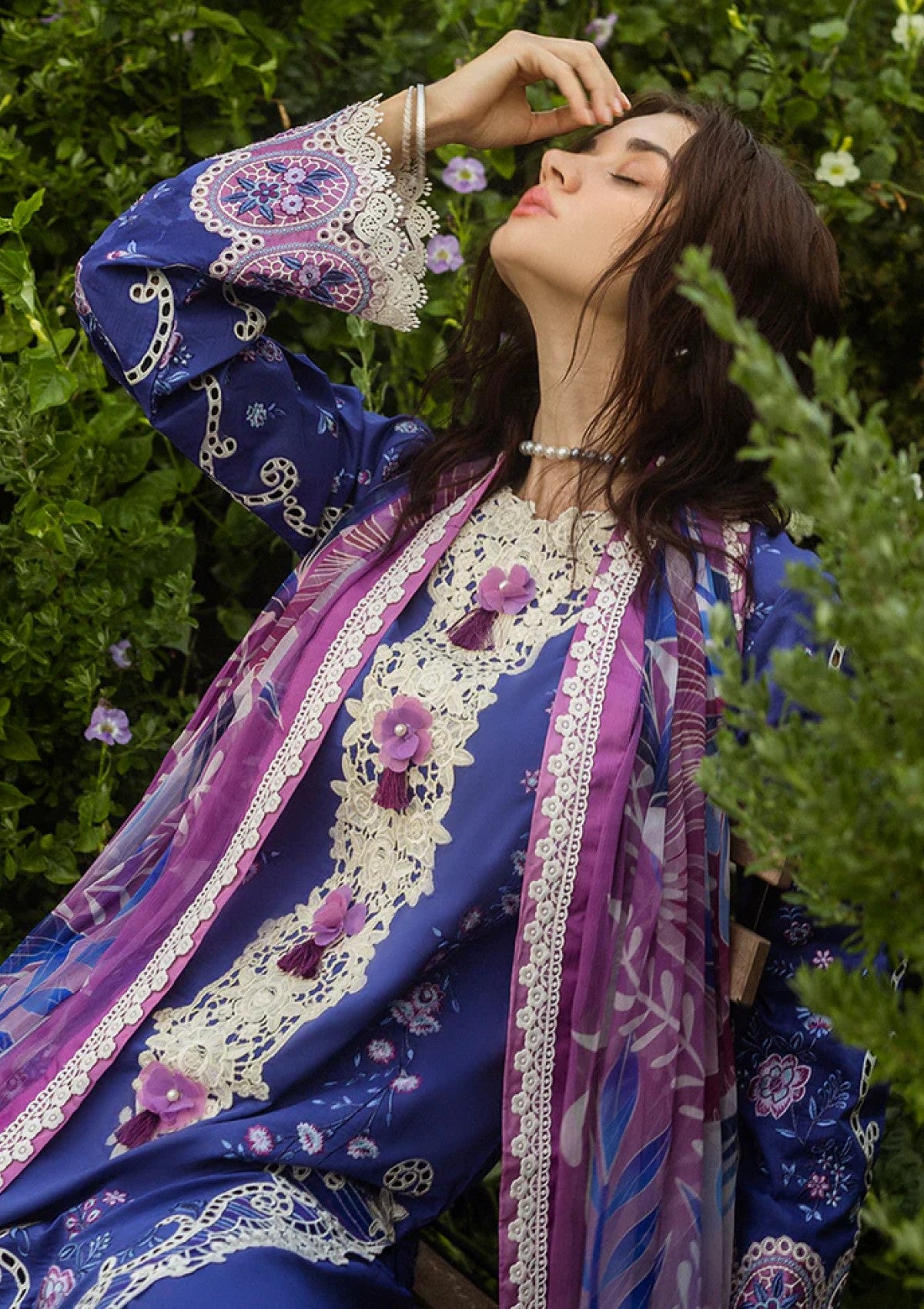 • Embroidered sleeves border (silk)