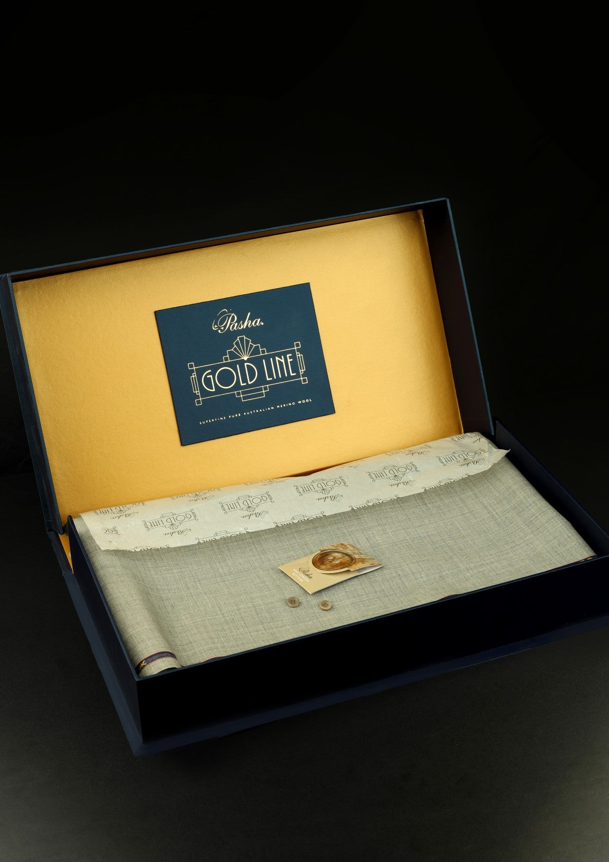 Gold Line – Merino Wool caters to gentlemen with a discerning taste for elegance and prestige. It is a super 130s, 190 gsm, double yarn fabric made from superfine 17.5 micron Pure Australian Merino Wool. Its sophisticated range of colours offers a selection beyond that of ordinary suit pieces. Its dark hues, soft touch, and outstanding fall make it the ideal fabric for formal and evening winter wear and also as a high-end gift.