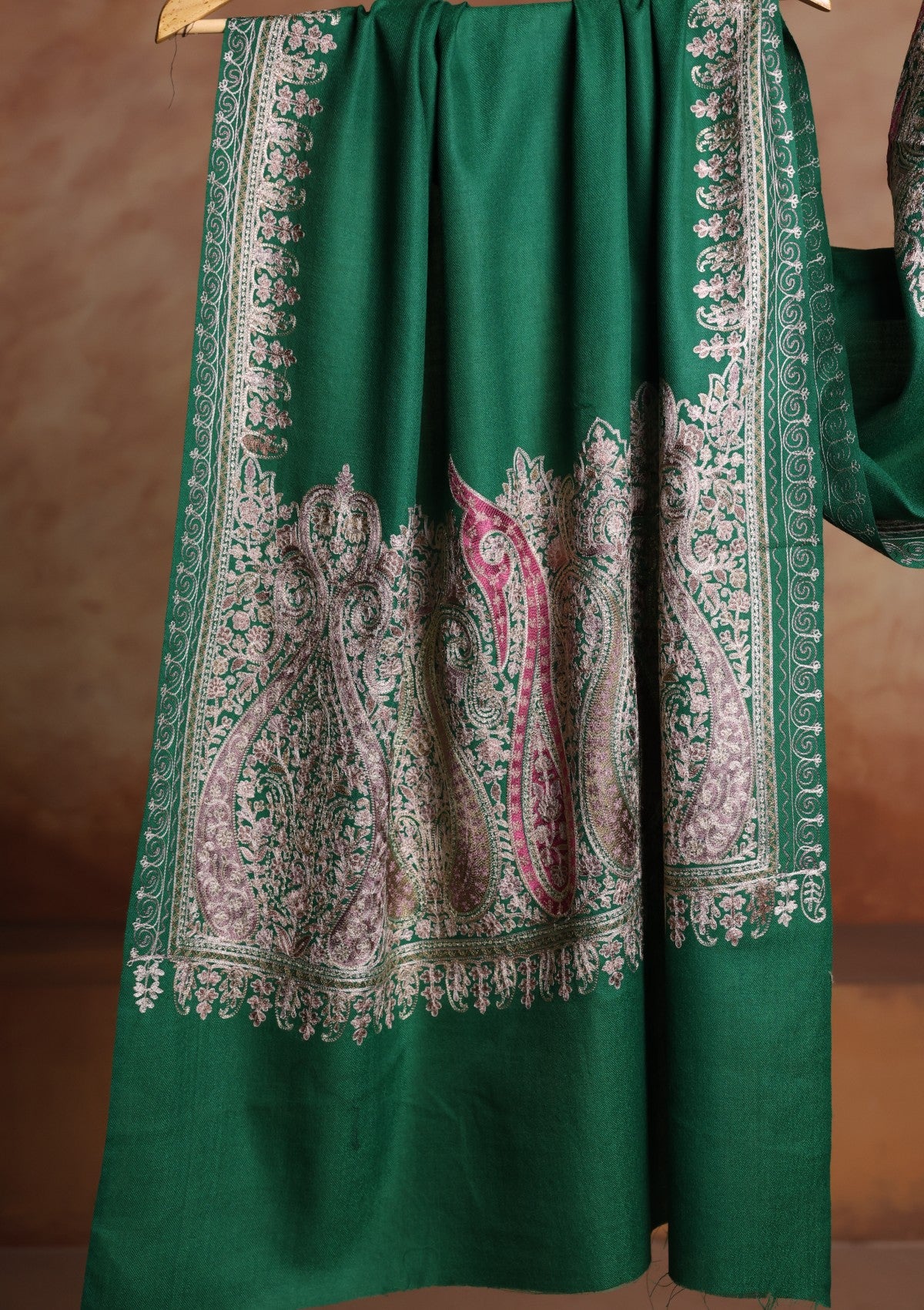 Pashmina Ari Work Jaaldar Scarf D#01 - Green