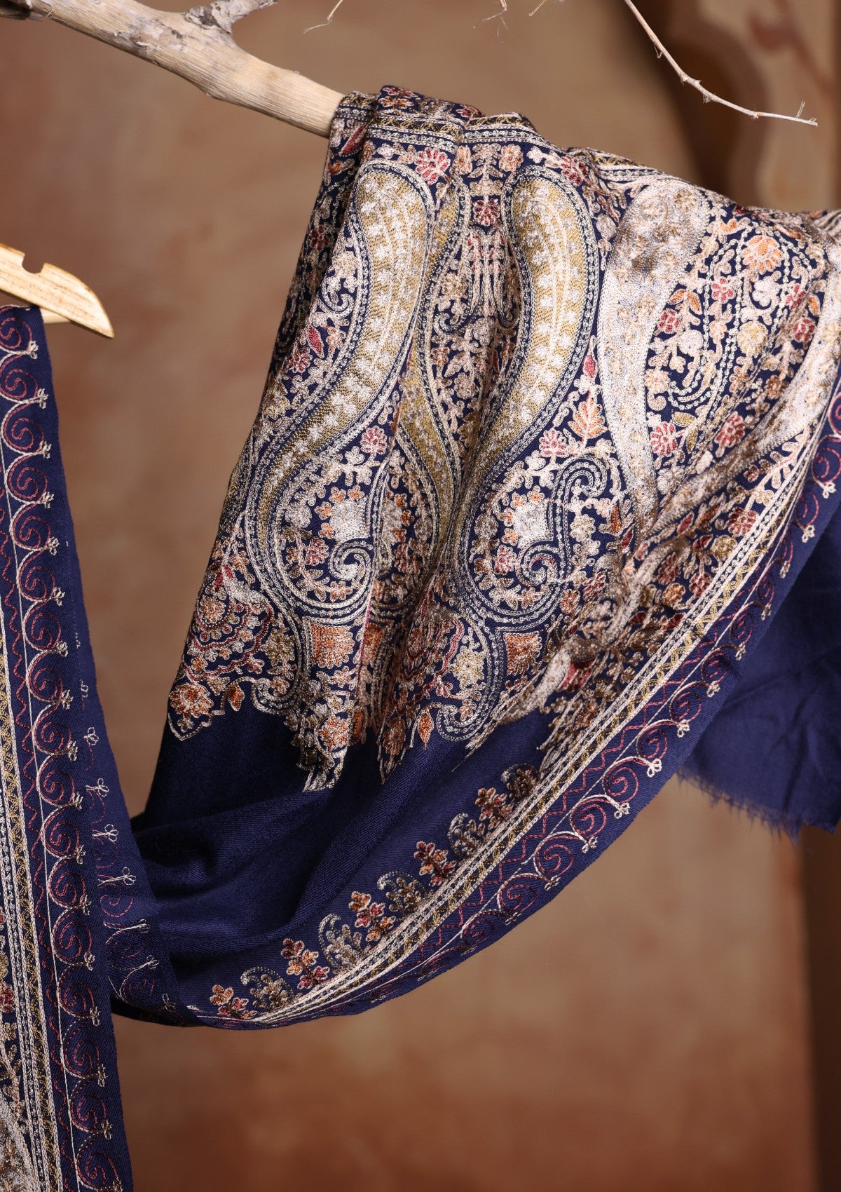 Pashmina Ari Work Jaaldar Scarf D#01 - N Blue