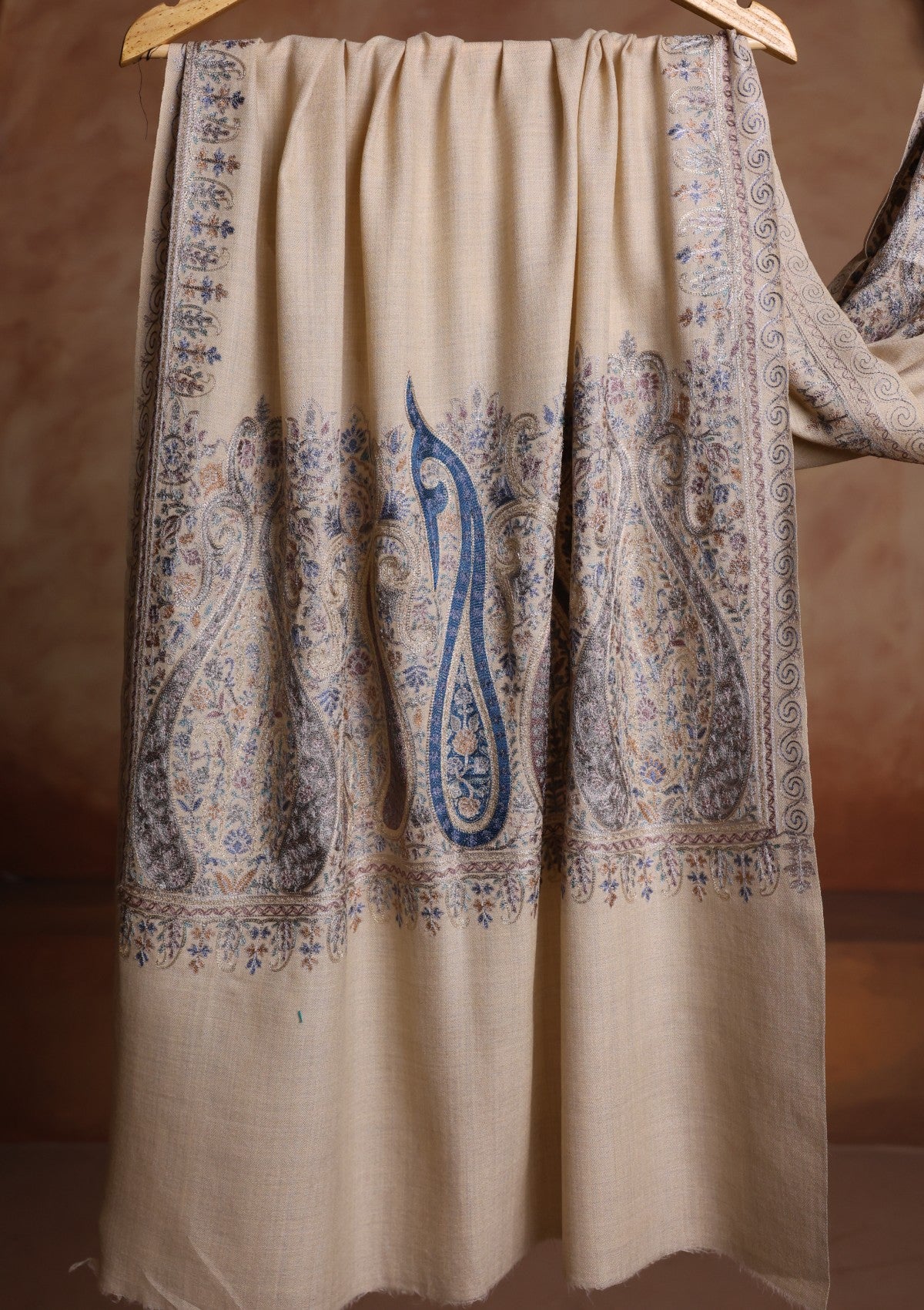 Pashmina Ari Work Jaaldar Scarf D#01 - Skin