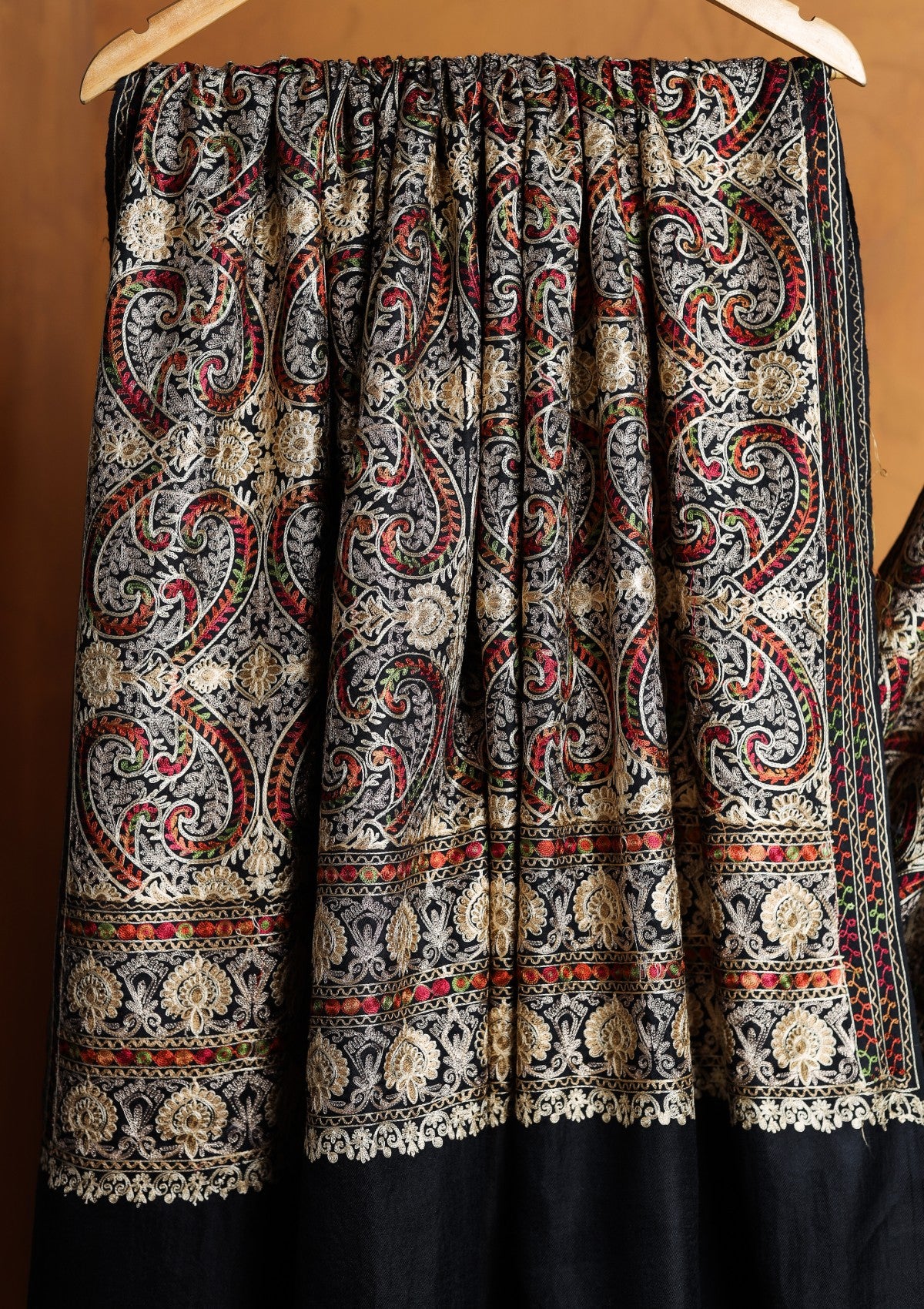 Pashmina Ari Work Jaaldar Shawl D#28 - Black