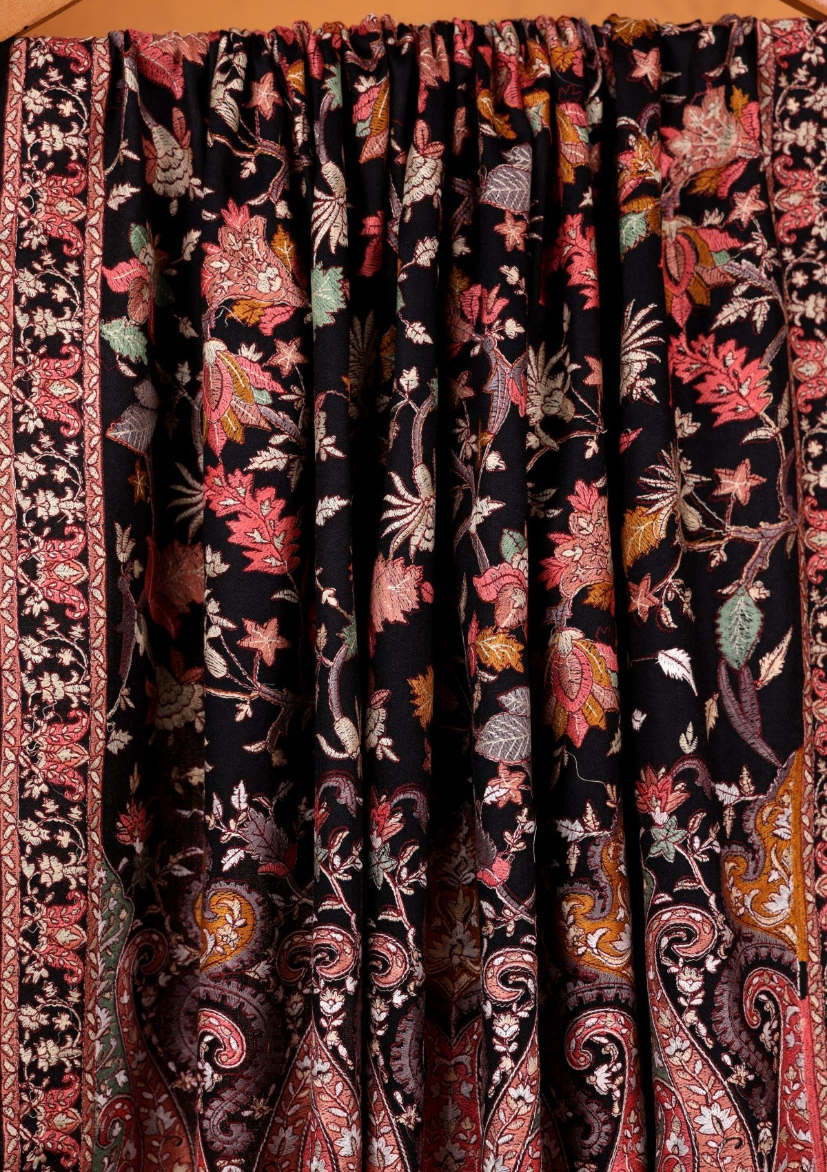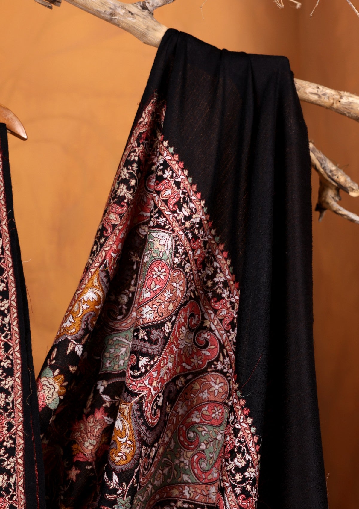 Pashmina Embroidered Jaaldar Shawl D#05 - Black