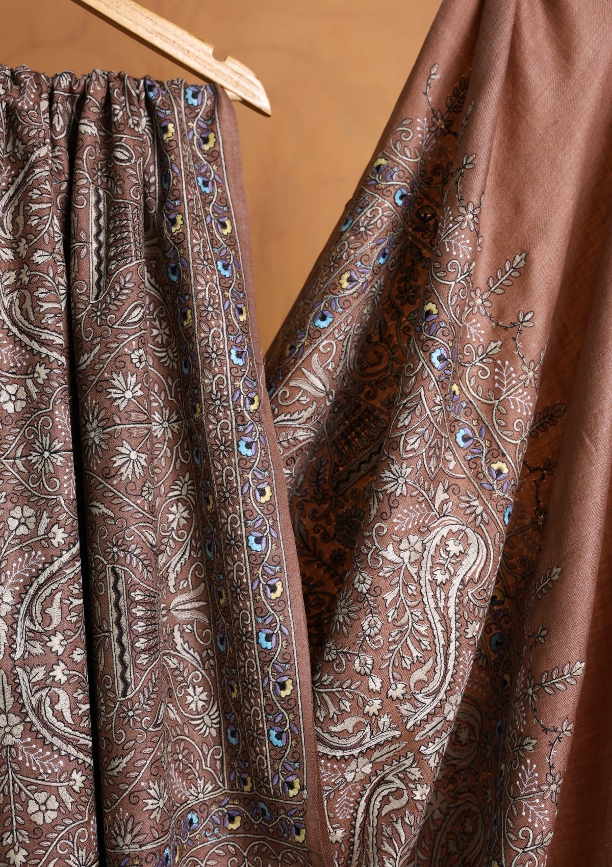 Pashmina Embroidered Jaaldar Shawl D#15 - Brown