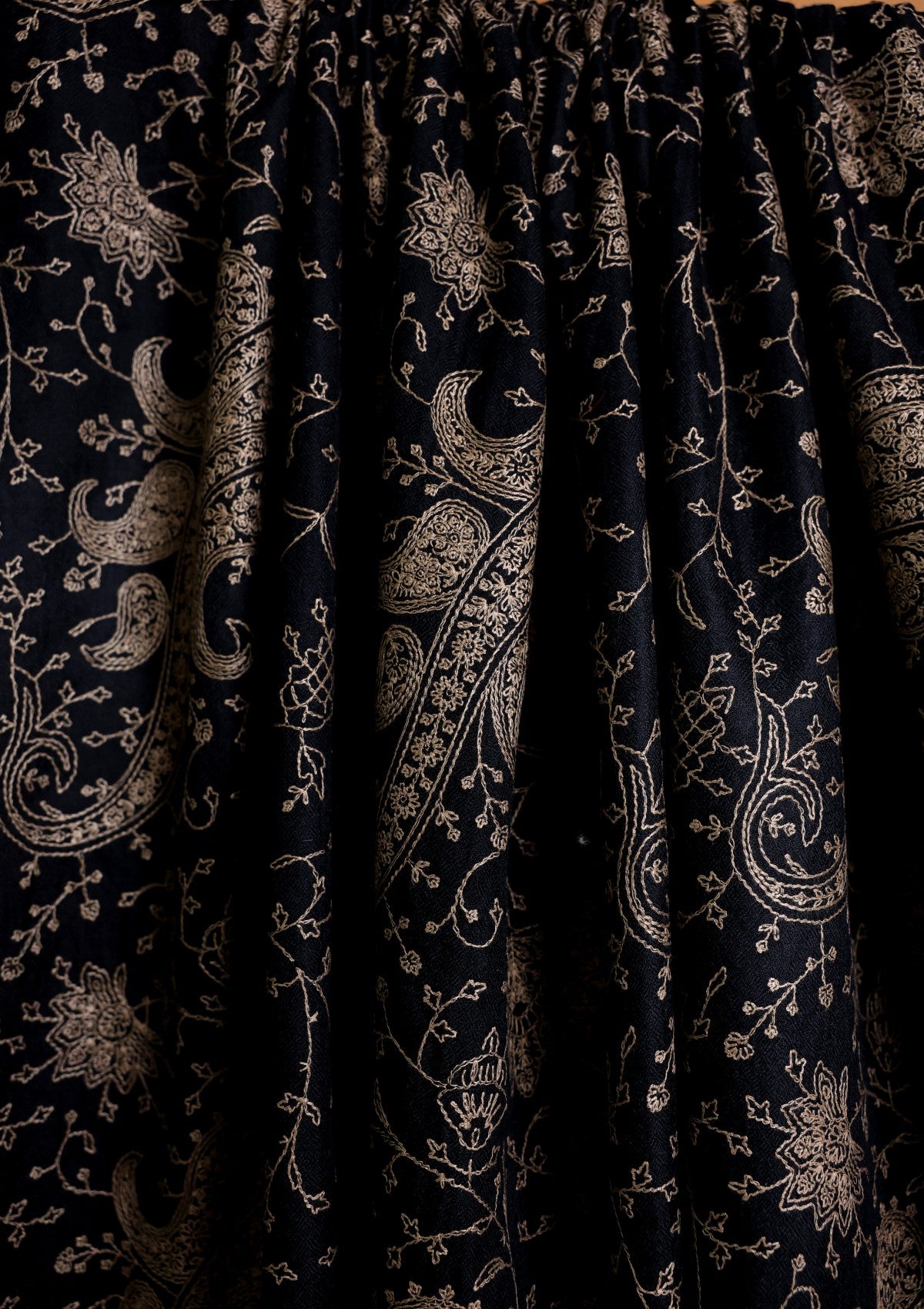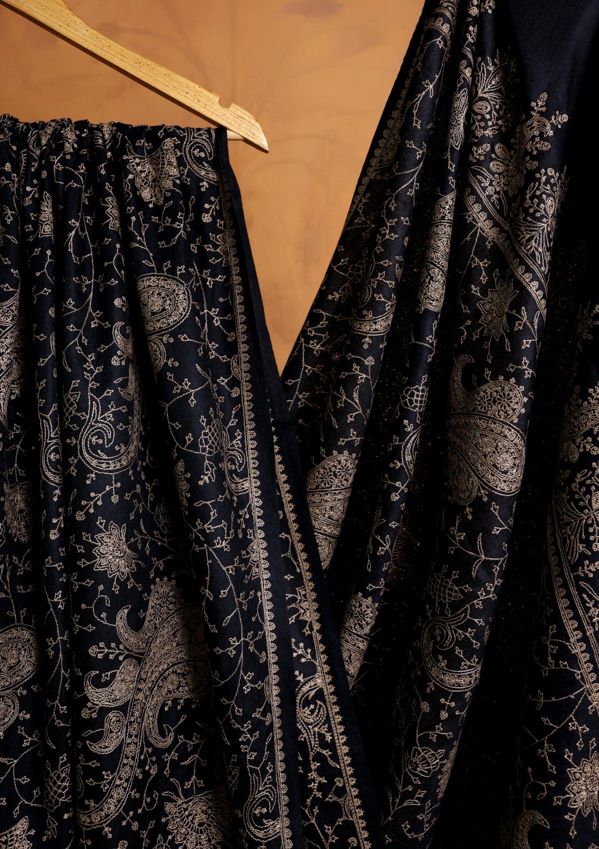 Pashmina Embroidered Jaaldar Shawl D#16 - Black